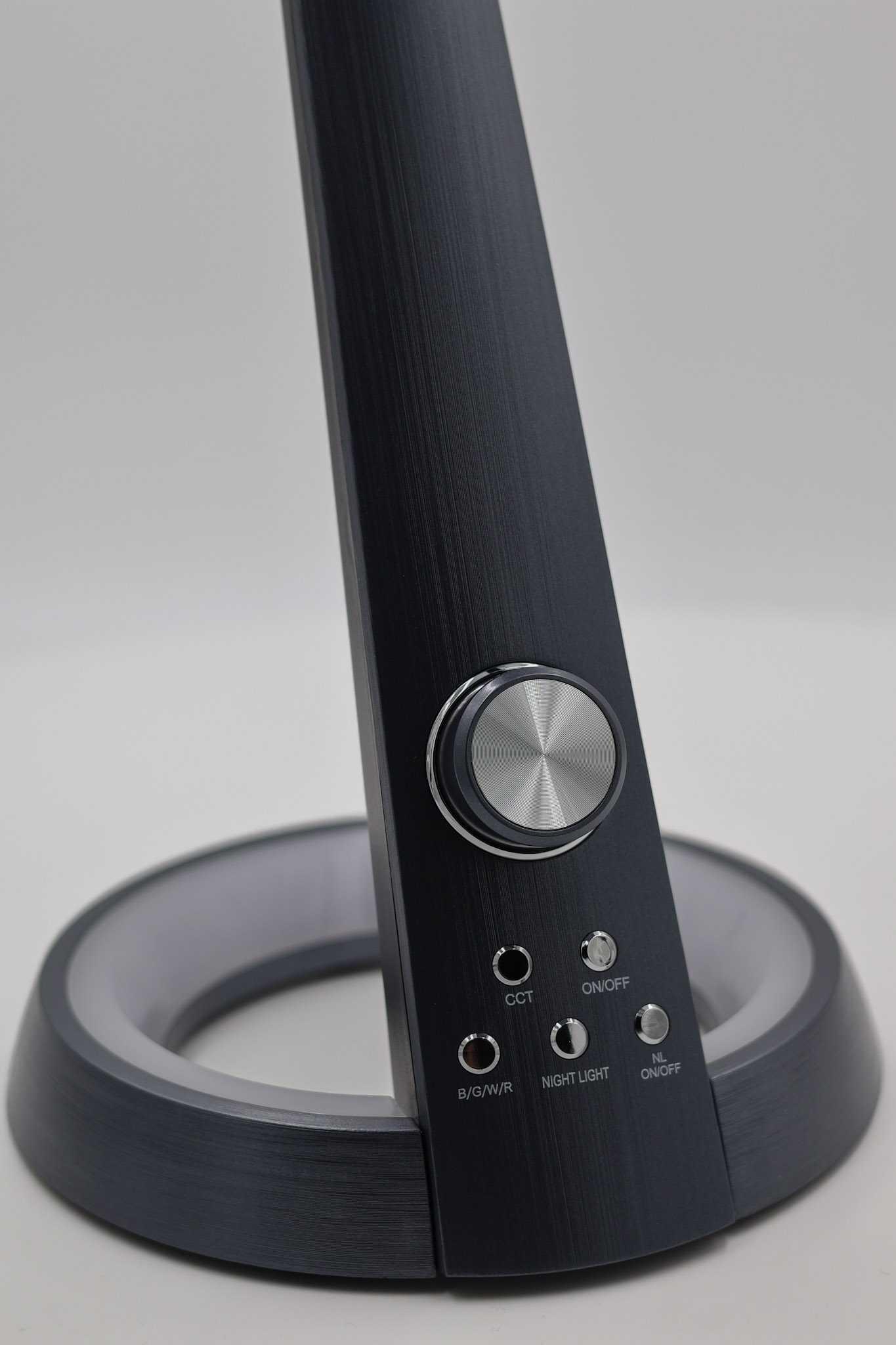 Dodatkową zaletą jest możliwość zmiany temperatury barwowej (w zakresie 3000–6300K), co pozwala przełączyć się między światłem ciepłym, dziennym a chłodnym, wspierając odpowiedni nastrój i efektywność pracy. Niezależnie od tego, czy potrzebujesz relaksującej poświaty, czy jasnego, pobudzającego światła – ta lampka zapewni Ci odpowiednie warunki.Światło nocne, gniazdo USB i praktyczne funkcjeK-BL1063 to nie tylko lampka – to wielofunkcyjne centrum oświetlenia biurka. Jej okrągła podstawa została wyposażona w pasek LED, który pełni funkcję kolorowego światła nocnego. Do wyboru masz aż trzy barwy: zieloną, niebieską i czerwoną – idealne jako delikatne światło towarzyszące wieczornemu relaksowi lub dla dzieci, które nie lubią zasypiać w ciemności..