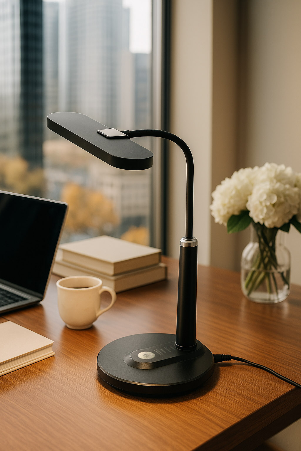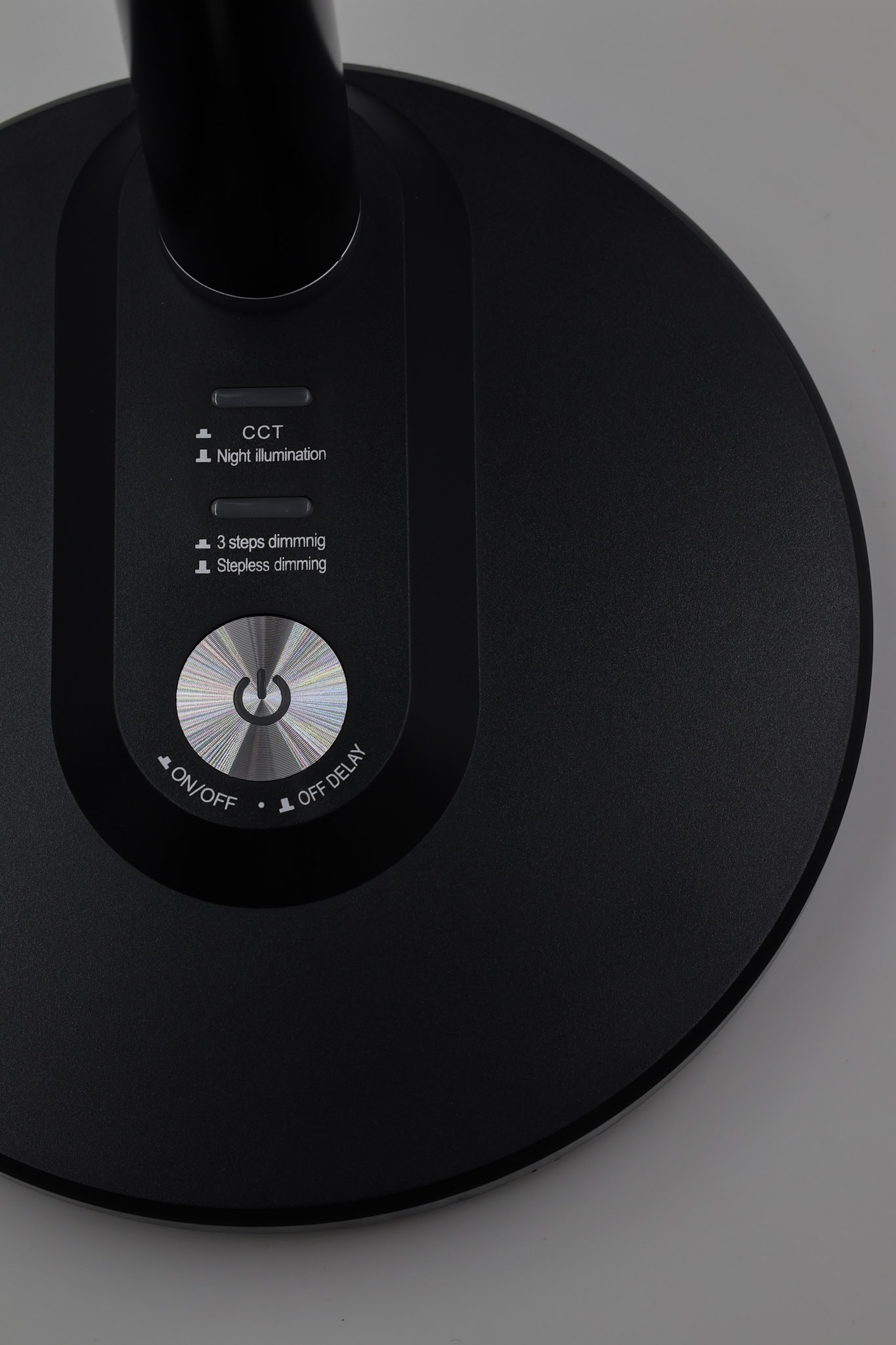 Twoje funkcjonalne home officeNiezwykle elegancka lampka biurkowa Dafi zachwyca nie tylko pod względem wizualnym, ale również praktycznym. Może poszczycić się kilkoma funkcjami, które pozwolą Ci łatwo dopasować lampkę do własnych potrzeb oraz z pewnością ułatwią Ci codzienne życie. Pierwszą z nich jest silikonowe ramię, które pozwala na regulację kąta oraz kierunku padania światła, dzięki czemu możesz szybko skierować strumień świetlny tam, gdzie akurat tego potrzebujesz. Dodatkowo, na dotykowym panelu umieszczonym na podstawie lampki znajdziesz kilka niesamowicie przydatnych funkcji takich jak trójstopniowy ściemniacz, który pozwoli Ci zmienić natężenie światła, a także przycisk do zmiany temperatury barwowej w zakresie 3000-5700K. W zależności od charakteru wykonywanej czynności samodzielnie dobierasz pożądaną barwę światła. Dodatkowo, dłuższe naciśnięcie przycisku „CCT” włącza tryb oświetlenia nocnego, który po wybudzeniu uwalnia niewielką ilość światła o ciepłej barwie ułatwiającego zasypianie.