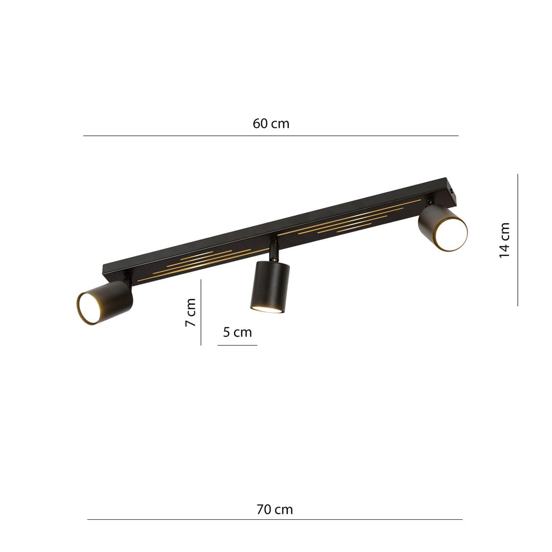 Dodaj elegancji swojemu wnętrzu dzięki lampie sufitowej LANDO 3 BLACK. Wykonana z wytrzymałej stali, ta lampa o minimalistycznym i nowoczesnym charakterze stanie się efektownym elementem Twojego pomieszczenia. Jej czarny kolor oraz laserowe nacięcia z prześwitującą ozdobą w kolorze złotym tworzą fascynujący efekt, który ożywi Twoje wnętrze. Lampa sufitowa LANDO 3 BLACK doskonale wpisuje się w minimalistyczny i nowoczesny styl, dodając wnętrzu wyjątkowego charakteru. Dzięki spotom z laserowym nacięciem, lampa ta będzie skutecznym źródłem światła, idealnym do oświetlenia różnych obszarów w pomieszczeniu. Co więcej, lampa została wyprodukowana w Polsce, co podkreśla jej wysoką jakość oraz staranność wykonania.