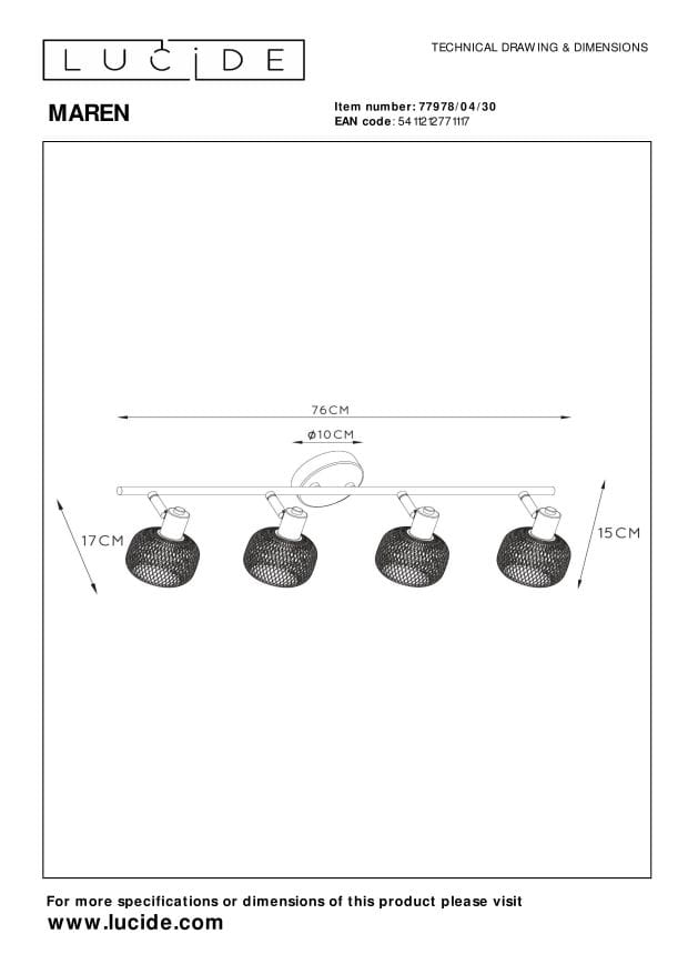 Lampa sufitowa MAREN 77978/04/30 od producenta Lucide to wyjątkowy element, który wzbogaci każde wnętrze swoją elegancją i nowoczesnym stylem. Jej minimalistyczny czarny design doskonale wpisuje się w najnowsze trendy aranżacji, a solidna konstrukcja z metalu zapewnia trwałość i stabilność. Lampa ma wysokość 170 mm oraz szerokość 760 mm, co czyni ją idealnym wyborem do przestronnych pomieszczeń. Z 4 miejscami na źródła światła z trzonkiem E14, max moc 40 W oraz możliwością ściemniania przy zastosowaniu odpowiednich żarówek, MAREN pozwala na precyzyjne dostosowanie atmosfery w każdym pomieszczeniu.