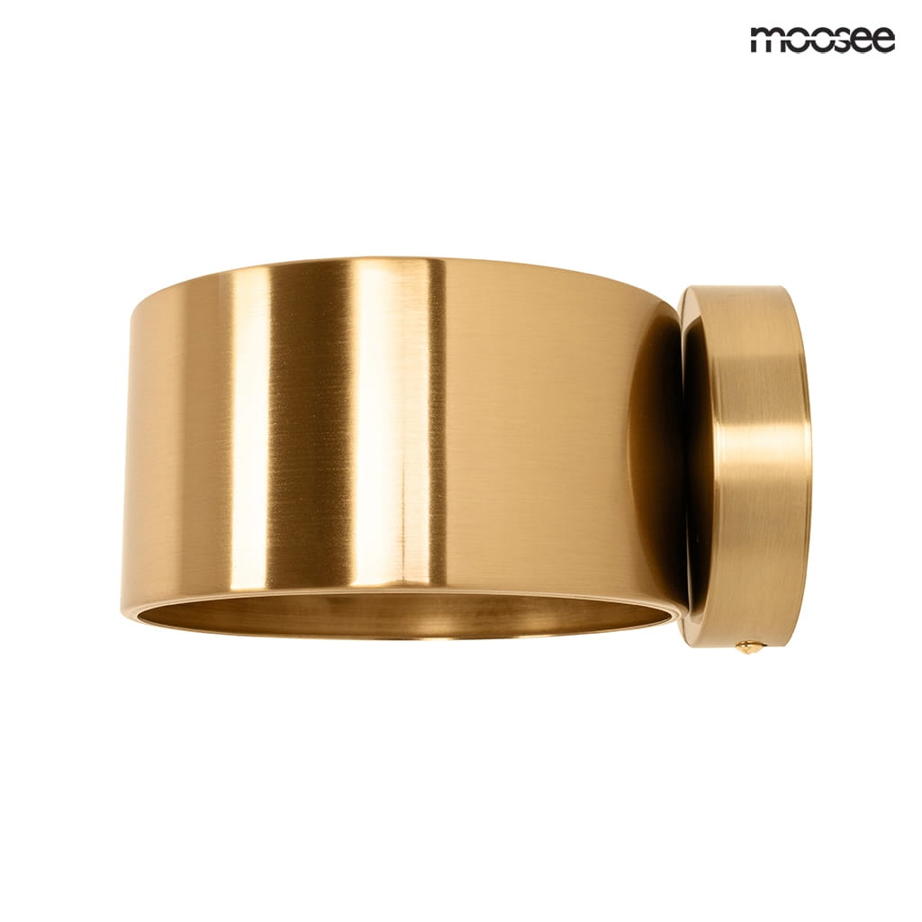 Złoty kinkiet ARRO marki Moossee to przykład oświetlenia ściennego, które mimo prostej formy oferuje ciekawy efekt wizualny. Aluminiowy klosz w kolorze złota rozprasza światło w dwóch kierunkach – ku górze i do dołu. To rozwiązanie sprawia, że kinkiet doskonale sprawdza się w roli światła pomocniczego lub akcentowego.