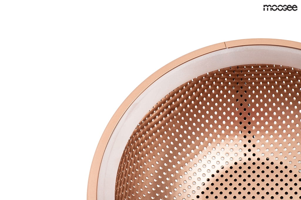 Lampa FARO została wykonana z aluminium i akrylu, co gwarantuje trwałość i nowoczesny wygląd. Miedziany kolor oprawy nadaje jej wyrafinowanego charakteru, a matowy klosz w połączeniu z ażurowym wykończeniem tworzy unikalny efekt świetlny, który ożywia przestrzeń i nadaje jej wyjątkowego klimatu.