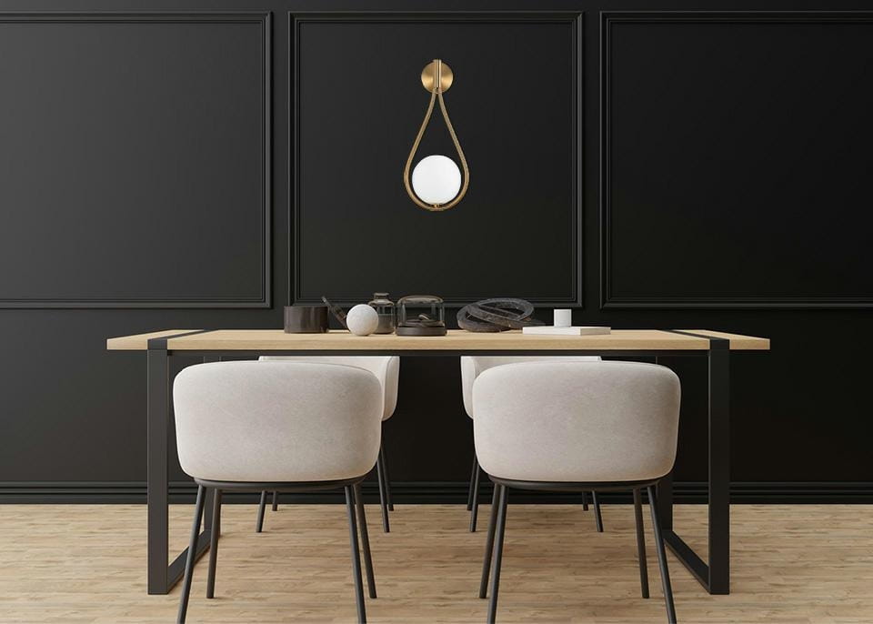 Wykonana została z połączenia stali nierdzewnej w złotym kolorze i kulistego klosza.