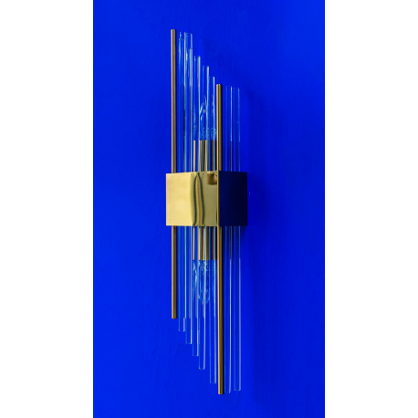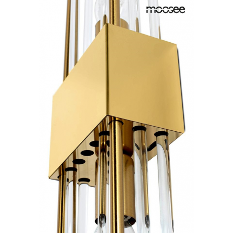 Lampa SLANT została wykonana z metalu i szkła w stylowym, złotym wykończeniu. Transparentne klosze, ułożone po skosie, tworzą oryginalny efekt wizualny, który przyciąga wzrok i podkreśla charakter wnętrza. Jej minimalistyczny kształt doskonale wpisuje się zarówno w klasyczne, jak i nowoczesne aranżacje.