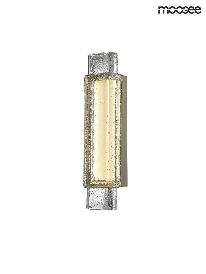 MOOSEE lampa ścienna TESORO złota to wyjątkowe połączenie elegancji, nowoczesności i funkcjonalności. Jej starannie zaprojektowana konstrukcja, wykonana z połączenia wzorzystego szkła i metalu, sprawia, że lampa jest nie tylko źródłem światła, ale również efektownym elementem dekoracyjnym.