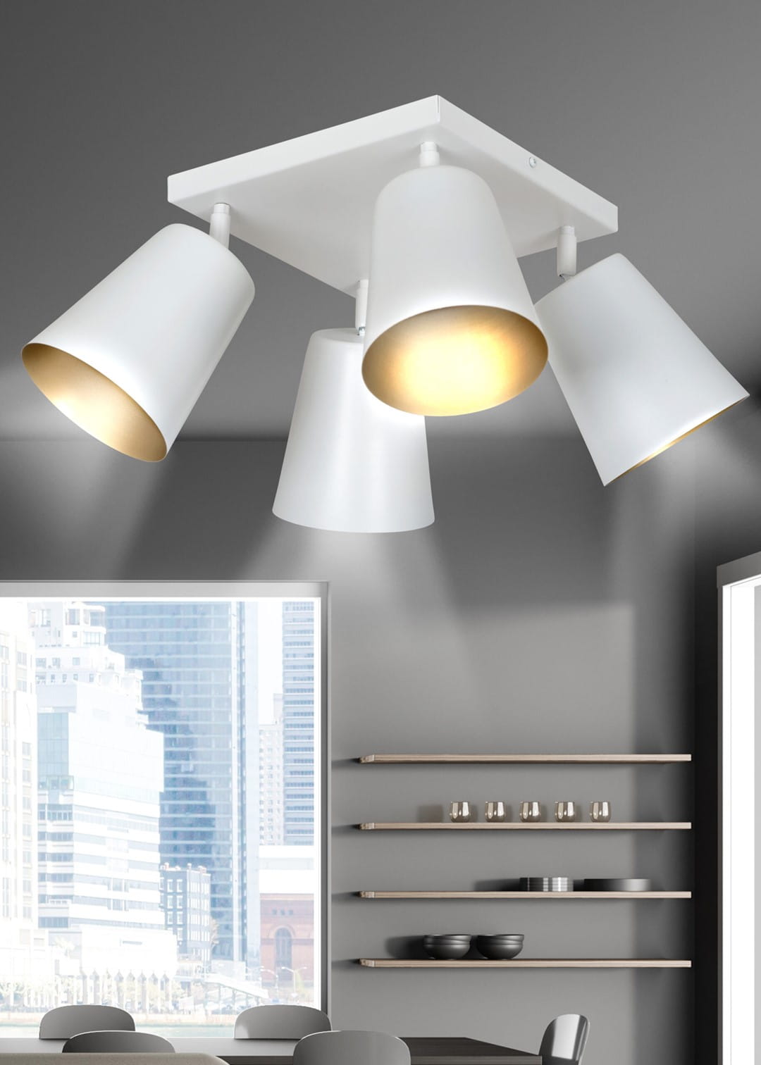 Lampa PRISM 4 WHITE / GOLD doskonale sprawdzi się w różnych pomieszczeniach, a jej funkcjonalność pozwala na szerokie możliwości aranżacyjne. Możesz ją wykorzystać w: