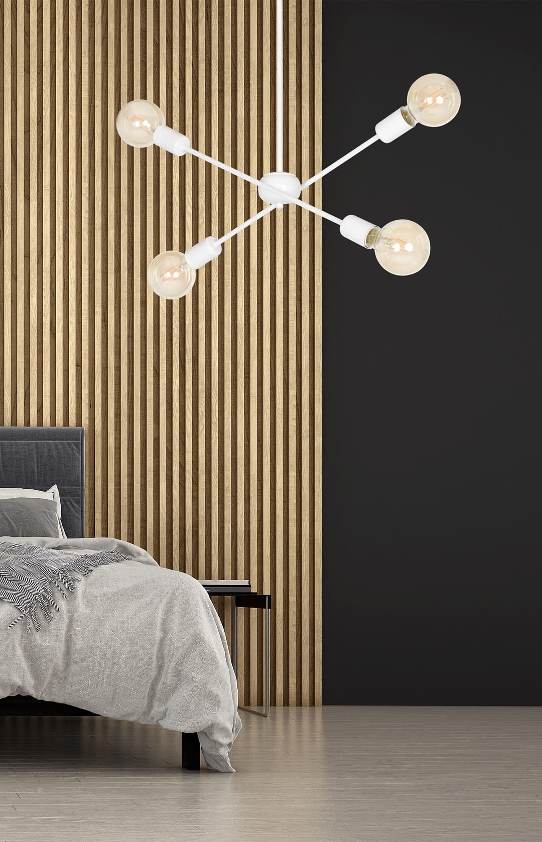 Bez względu na to, czy potrzebujesz oświetlenia w salonie, jadalni, czy biurze, PROTON 4 WHITE sprawdzi się doskonale w różnych przestrzeniach. Może z łatwością stać się centralnym punktem w Twoim wnętrzu, a także eleganckim dodatkiem do mniej wyeksponowanych miejsc. Oto niektóre z możliwości wykorzystania: