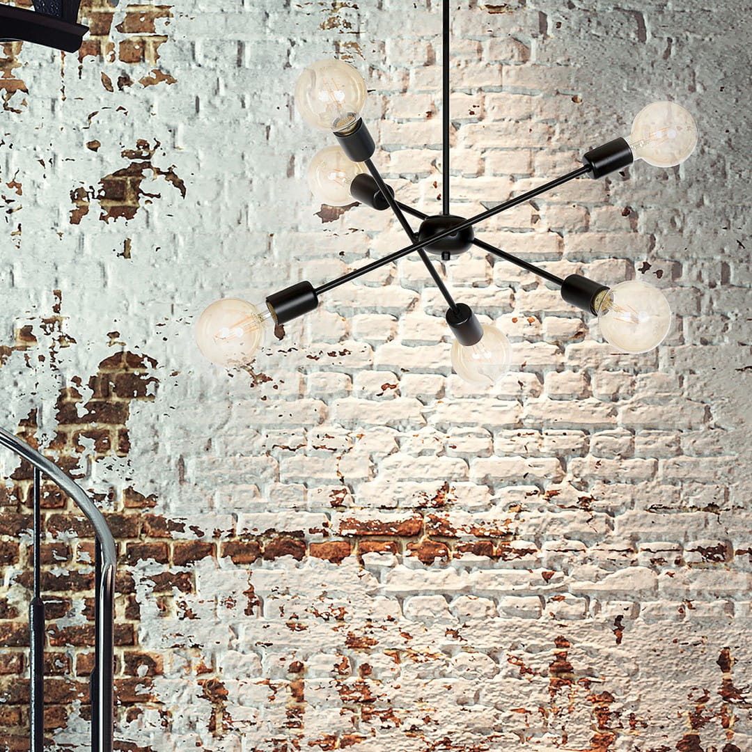 Lampa PROTON 6 BLACK to synonim nowoczesności i elegancji w jednej formie. Jej oryginalny design doskonale wpisuje się w aktualne minimalistyczne trendy, przyciągając wzrok nie tylko swoimi wymiarami, ale także niepowtarzalnym charakterem. Klasyczna kolorystyka czarna sprawia, że lampa staje się uniwersalnym elementem wystroju, który harmonijnie łączy się z różnorodnymi aranżacjami wnętrz – zarówno nowoczesnymi, jak i tradycyjnymi. Dzięki swojej niezwykłej konstrukcji, która obejmuje klosze rozpraszające światło w różnych kierunkach, PROTON 6 BLACK zapewnia równomierne oświetlenie całego pomieszczenia, tworząc przytulny i wyjątkowy klimat.
