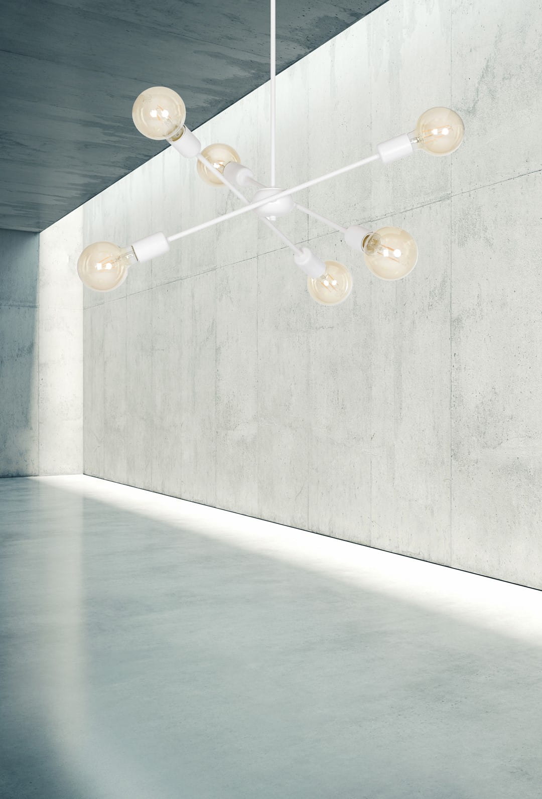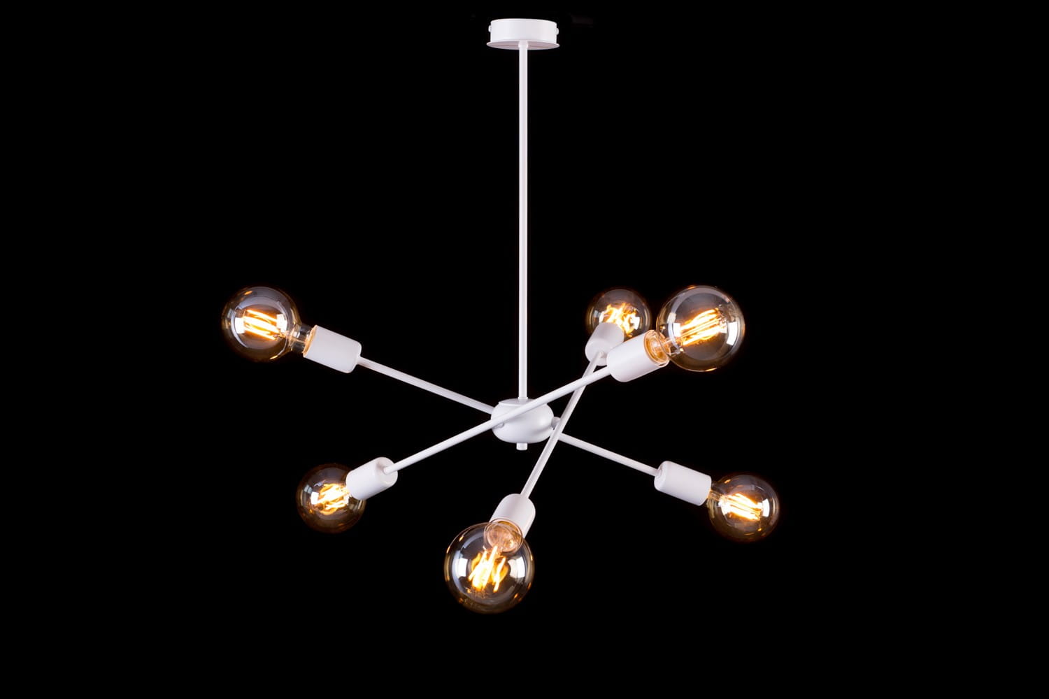PROTON 6 WHITE to nowoczesne oświetlenie sufitowe, które staje się centralnym punktem każdego wnętrza. Ta lampa, wpisująca się w minimalistyczne trendy, zachwyca swoją oryginalną formą. Dzięki unikalnemu designowi, PROTON 6 WHITE dodaje przestrzeni niepowtarzalnego charakteru, tworząc wyjątkowy klimat, w którym każda chwila staje się przyjemnością. Klasyczna kolorystyka sprawia, że lampa doskonale komponuje się zarówno z wnętrzami nowoczesnymi, jak i tradycyjnymi. Niezwykła konstrukcja lampy przyciąga wzrok, a rozproszone w różnych kierunkach klosze skutecznie oświetlają całe pomieszczenie, zapewniając idealne warunki do relaksu lub pracy.