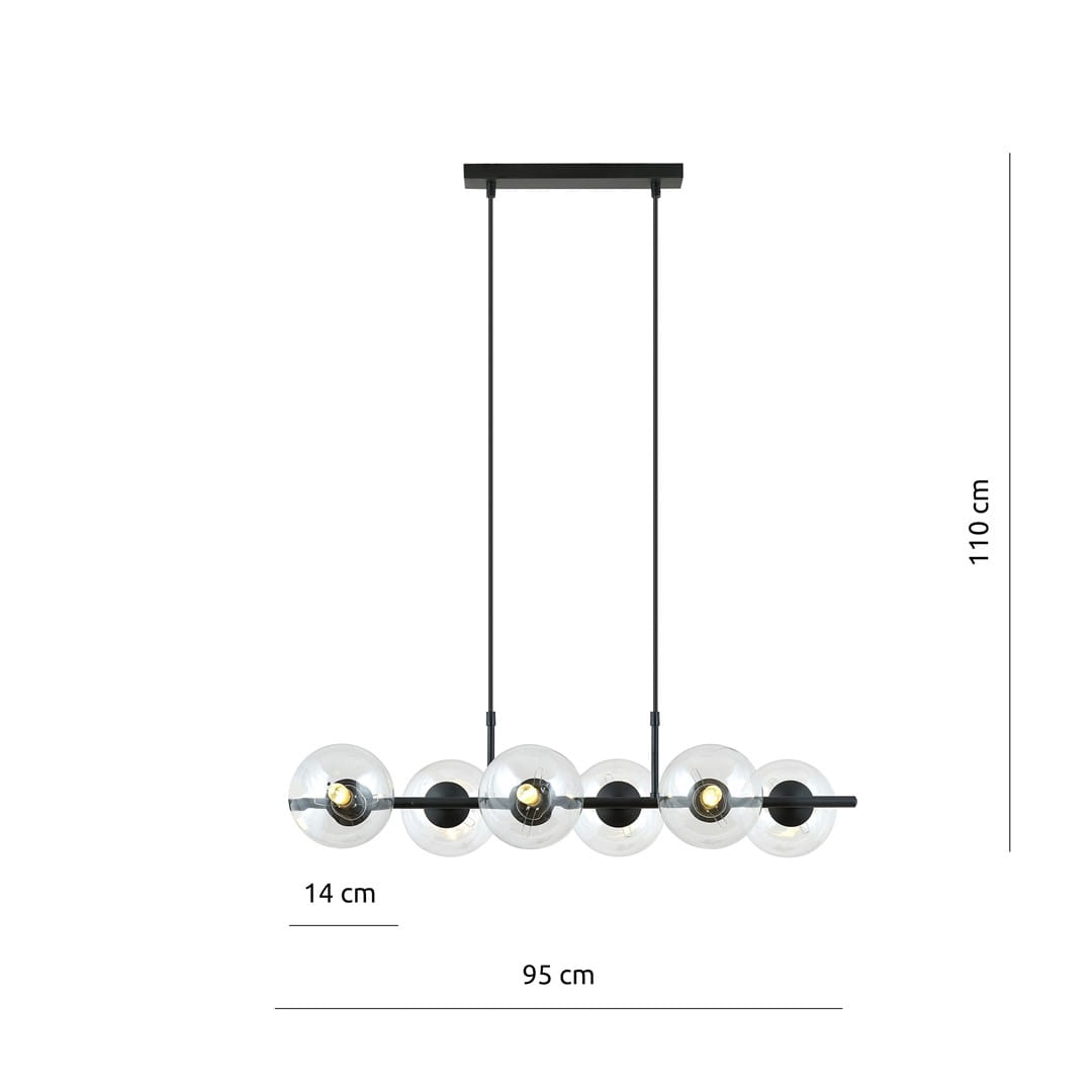 Lampa wisząca RORY 6 TRANSPARENT to idealny wybór dla tych, którzy pragną wzbogacić swoje wnętrza o nowoczesny, a zarazem klasyczny akcent. Cechuje się najmodniejszym designem oraz lekkością szklanych kloszy, co sprawia, że staje się nie tylko źródłem światła, lecz także stylową dekoracją, która doskonale doświetla nawet najbardziej przestronne pomieszczenia. Zawieszona nad stołem czy kuchenną wyspą, tworzy efektowny punkt centralny, nadając wnętrzu unikalny charakter. Forma lampy idealnie wpisuje się w minimalistyczne aranżacje, harmonijnie współgrając z prostymi liniami i czystymi przestrzeniami. Model RORY dostępny jest w wersji na 6 lub 8 punktów świetlnych oraz w różnych kolorach kloszy, co sprawia, że każdy może dopasować go do swoich potrzeb. Co więcej, produkt jest w 100% polski, co podkreśla jego jakość i rzemieślniczy charakter.