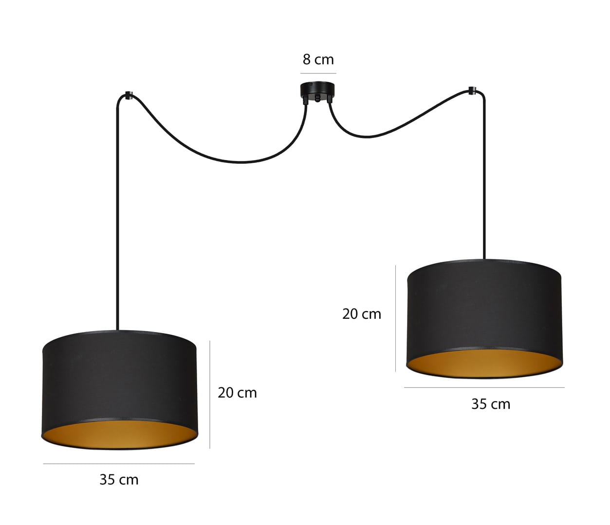 ROTO 2 BL BLACK/GOLD to propozycja od Emibig, która łączy w sobie klasyczny design i nowoczesne rozwiązania. Ta elegancka lampa wisząca, dostępna w wyrazistych kolorach, doskonale wpisuje się w różnorodne style wnętrz, od tradycyjnych po minimalistyczne. Trwały i odporny abażur oraz możliwość wyboru różnych wariantów kolorystycznych sprawiają, że ROTO 2 charakteryzuje się nie tylko estetyką, ale także funkcjonalnością. Długie przewody dają pełną swobodę w aranżacji – wystarczy kilka prostych ruchów, aby dostosować układ abażurów do własnych preferencji. Dzięki modelowi z 2 źródłami światła, Twoje pomieszczenie zyska wyjątkowe doświetlenie, które podkreśli jego charakter.