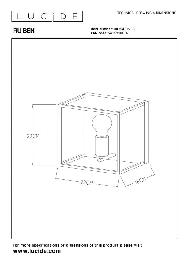 Kinkiet ścienny Lucide RUBEN 00224/01/30 - Stylowe oświetlenie