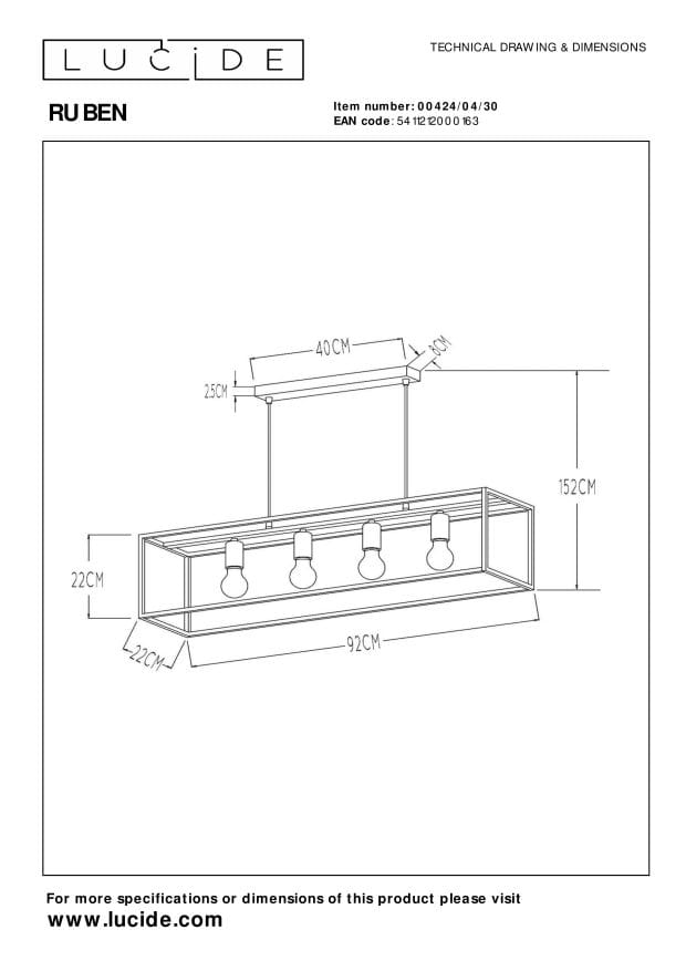 Lampa wisząca Lucide RUBEN 00424/04/30 - połączenie elegancji i funkcjonalności