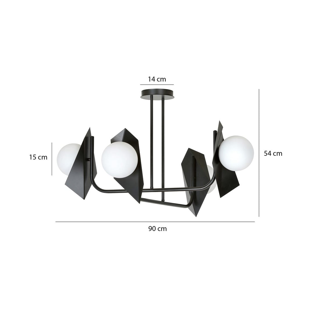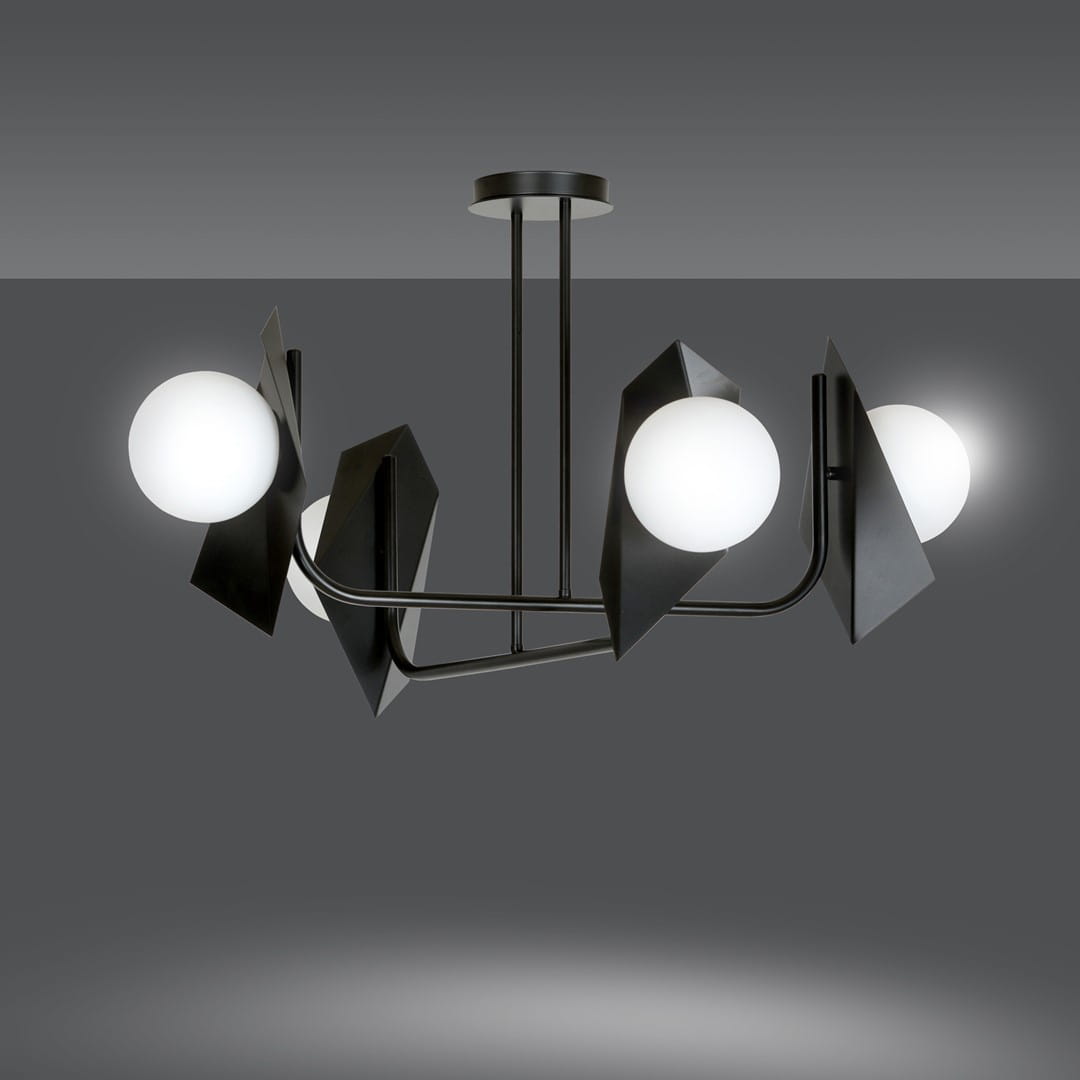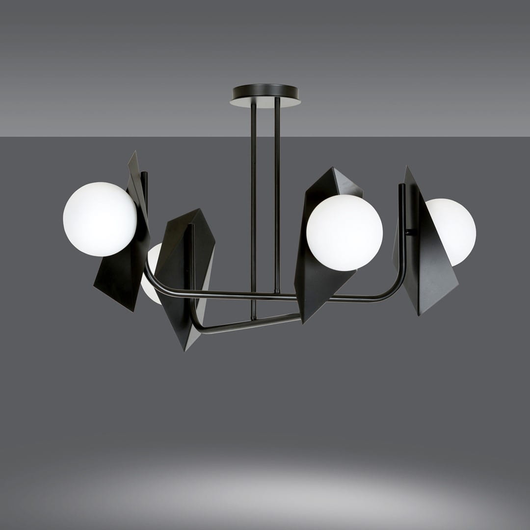 Lampa sufitowa THORD 4 BLACK to doskonałe połączenie nowoczesności z unikalnym stylem. Jej **geometryczna metalowa konstrukcja** przyciąga wzrok i dodaje elegancji każdemu pomieszczeniu. Zastosowanie wysokiej jakości materiałów w produkcji sprawia, że jest to nie tylko efektowny, ale i trwały element wyposażenia. Lampa dostępna w wersji czarnej, będzie idealnym dodatkiem do minimalistycznych oraz industrialnych wnętrz. Zapewnia znakomite doświetlenie przestrzeni dzięki możliwości osadzenia aż 4 źródeł światła, co czyni ją nie tylko dekoracyjnym akcentem, ale również praktycznym rozwiązaniem dla Twojego domu.