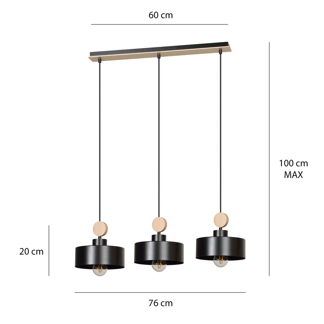 Lampa TUNISO 3 BLACK to połączenie minimalistycznego designu z modnym stylem skandynawskim. Jej prosta, lecz efektowna forma sprawia, że doskonale wpisuje się w różnorodne aranżacje wnętrz, od nowoczesnych po klasyczne. Otwarty metalowy klosz umożliwia pełne rozświetlenie nawet największych pomieszczeń, tworząc przytulną atmosferę do codziennych spotkań. Dodatki wykonane z drewna są nie tylko estetyczne, ale również podkreślają unikalny charakter lampy, przyciągając wzrok i dodając wyjątkowego uroku każdemu wnętrzu. TUNISO 3 BLACK dostępna jest w dwóch wersjach kolorystycznych, co pozwala na swobodny wybór idealnego wariantu do Twojego domu. Wykonana z materiałów najwyższej jakości, lampa jest produktem w 100% polskim, co stanowi dodatkowy atut dla osób ceniących lokalne produkty.