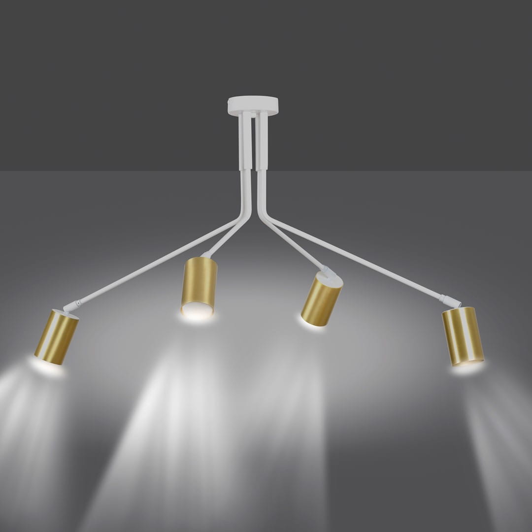 Lampa sufitowa VERNO 4 WHITE to idealne połączenie nowoczesności i elegancji, które doskonale wkomponuje się w minimalistyczne trendy stylu loftowego. Jej oryginalna forma przyciąga wzrok, nadając przestrzeni niepowtarzalnego charakteru. Klasyczna kolorystyka, wzbogacona o ponadczasowe złoto, otwiera przed nami szereg możliwości aranżacyjnych – lampa ta harmonijnie współgra zarówno z nowoczesnymi, jak i tradycyjnymi wnętrzami. Dzięki dostępności w różnych wersjach – białej i czarnej oraz liczbie punktów świetlnych (2, 3 lub 4), VERNO 4 WHITE daje możliwość pełnej personalizacji dopasowanej do Twoich potrzeb. Wykonana z wysokiej jakości materiałów, ta polska produkcja łączy w sobie trwałość i estetykę, co czyni ją doskonałym wyborem do każdego wnętrza.