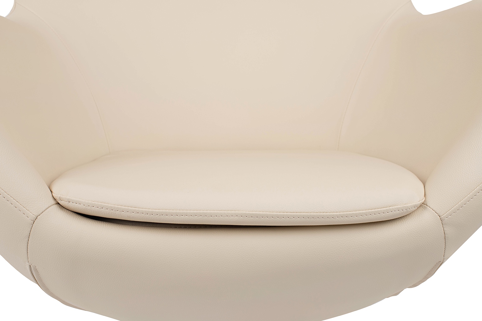 Ciekawym elementem jest dekoracyjny suwak na plecach fotela. Fotel tapicerowany jest ekoskórą w kolorze beżowym.
