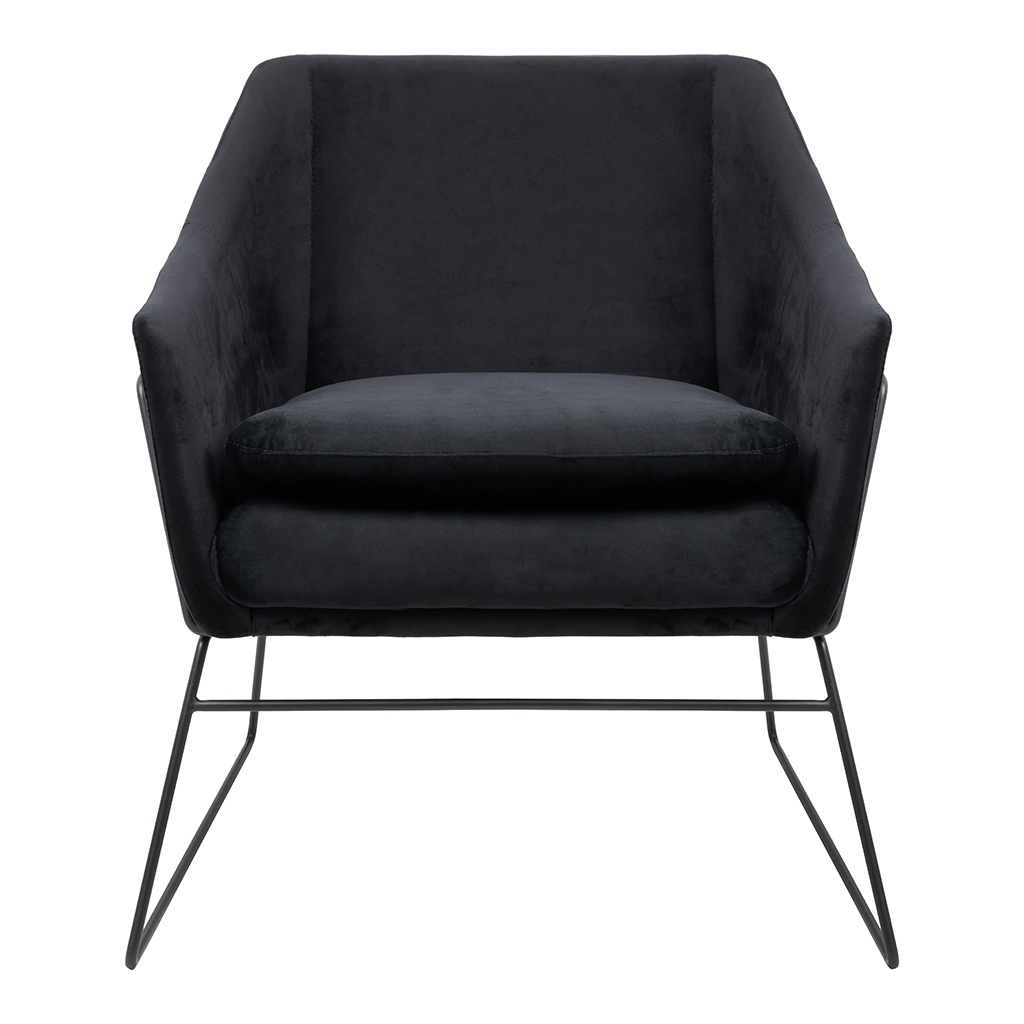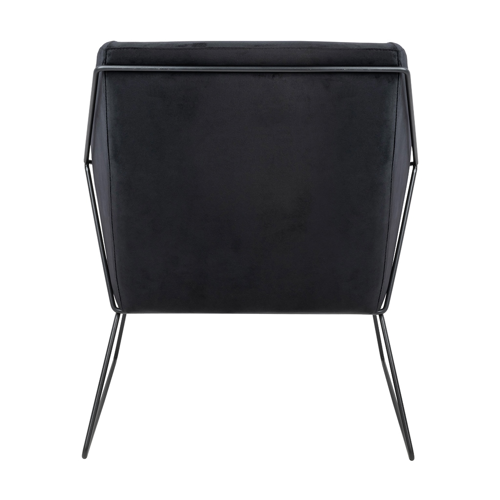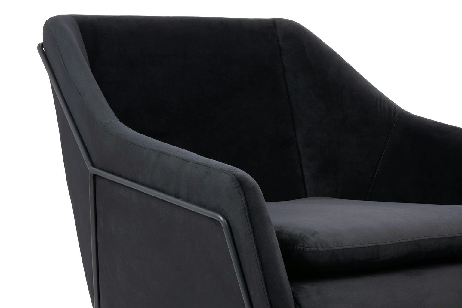 Siedzisko oraz poduszka tapicerowane są aksamitnym welurem w kolorze czarnym.