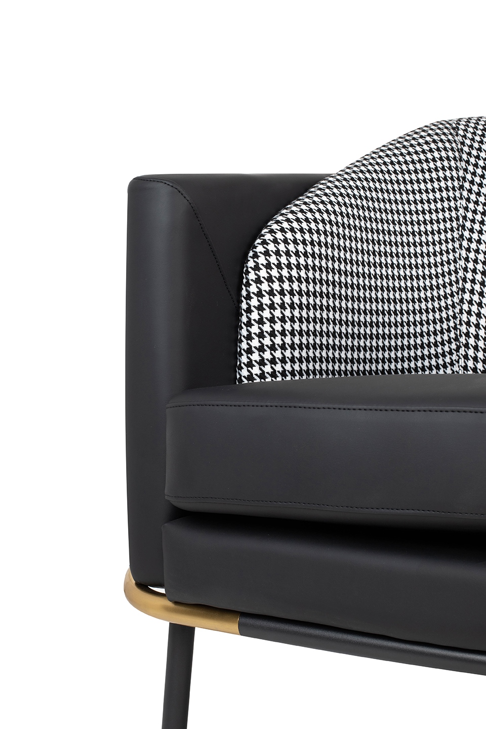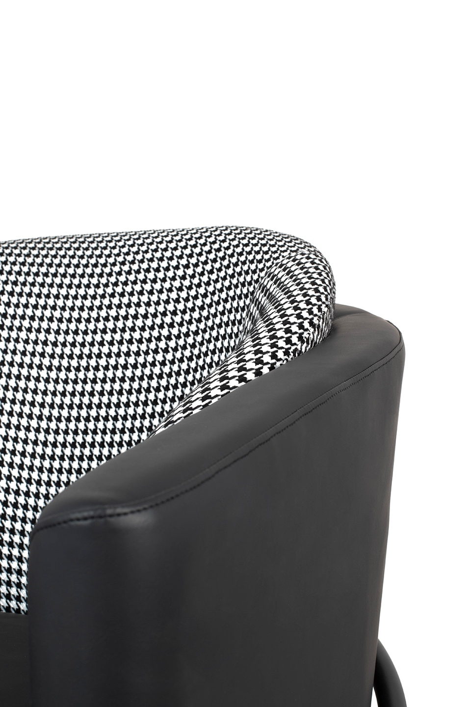 Oparcie obszyto tkaniną w stylową biało - czarną pepitkę, wprowadzającą nutę ponadczasowego szyku.