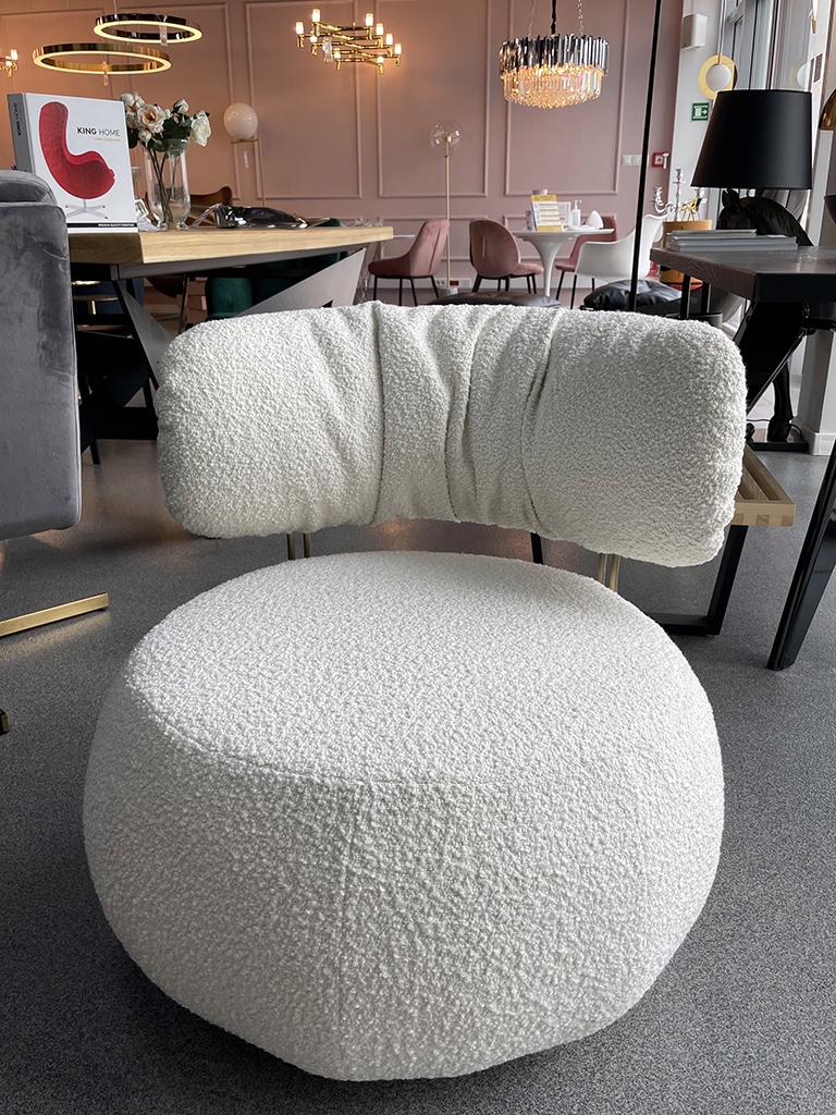 Niezwykle wygodny fotel w miękkiej i przyjemnej w dotyku tkaninie teddy, wykonanej z poliestru (95%) oraz akrylu (5%),
