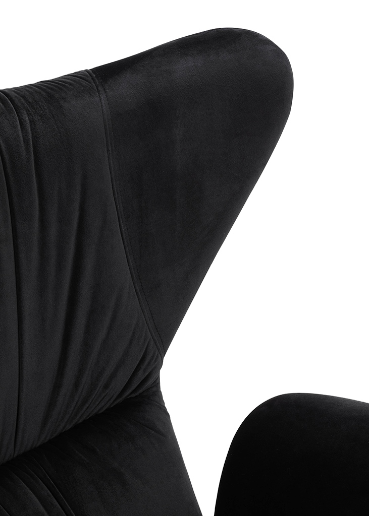 Całość pokryto delikatnym, aksamitnym welurem w kolorze czerni, który nadaje wnętrzu wyjątkowy charakter i przytulność.