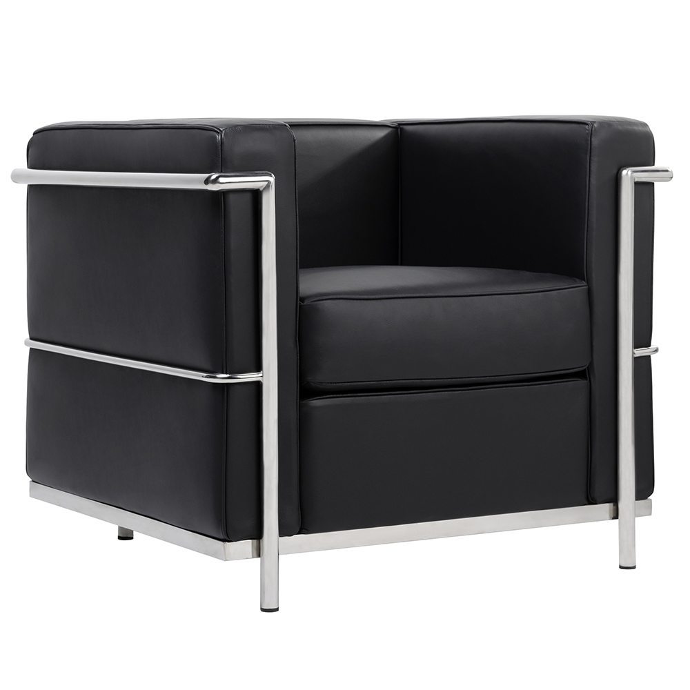 Fotel SOFT LC2 czarny - włoska skóra naturalna, chrom
