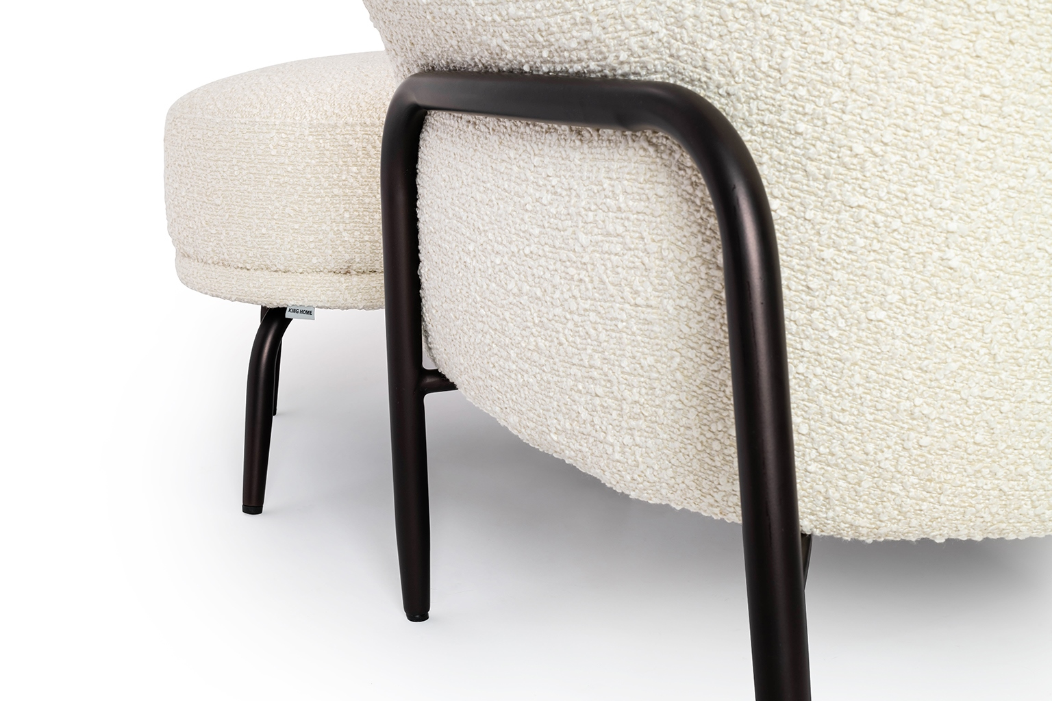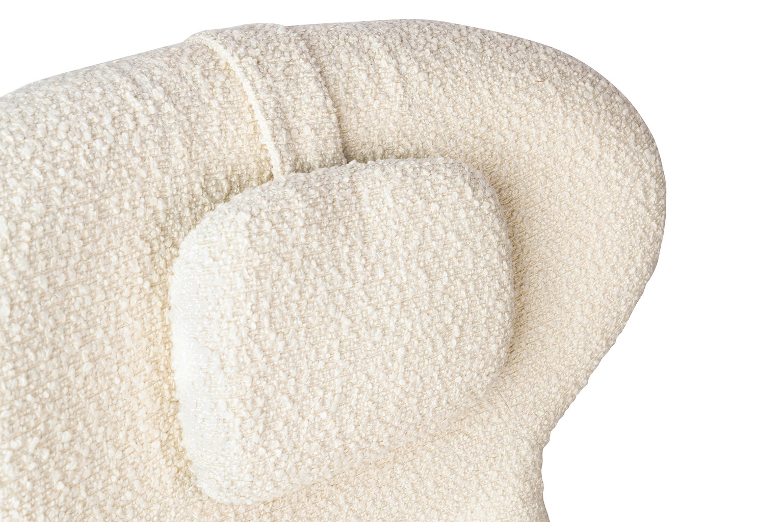 Fotel tapicerowany jest niezwykle miękką, przyjemną w dotyku tkaniną typu teddy, która otula ciepłem i wprowadza do wnętrza przytulną atmosferę.