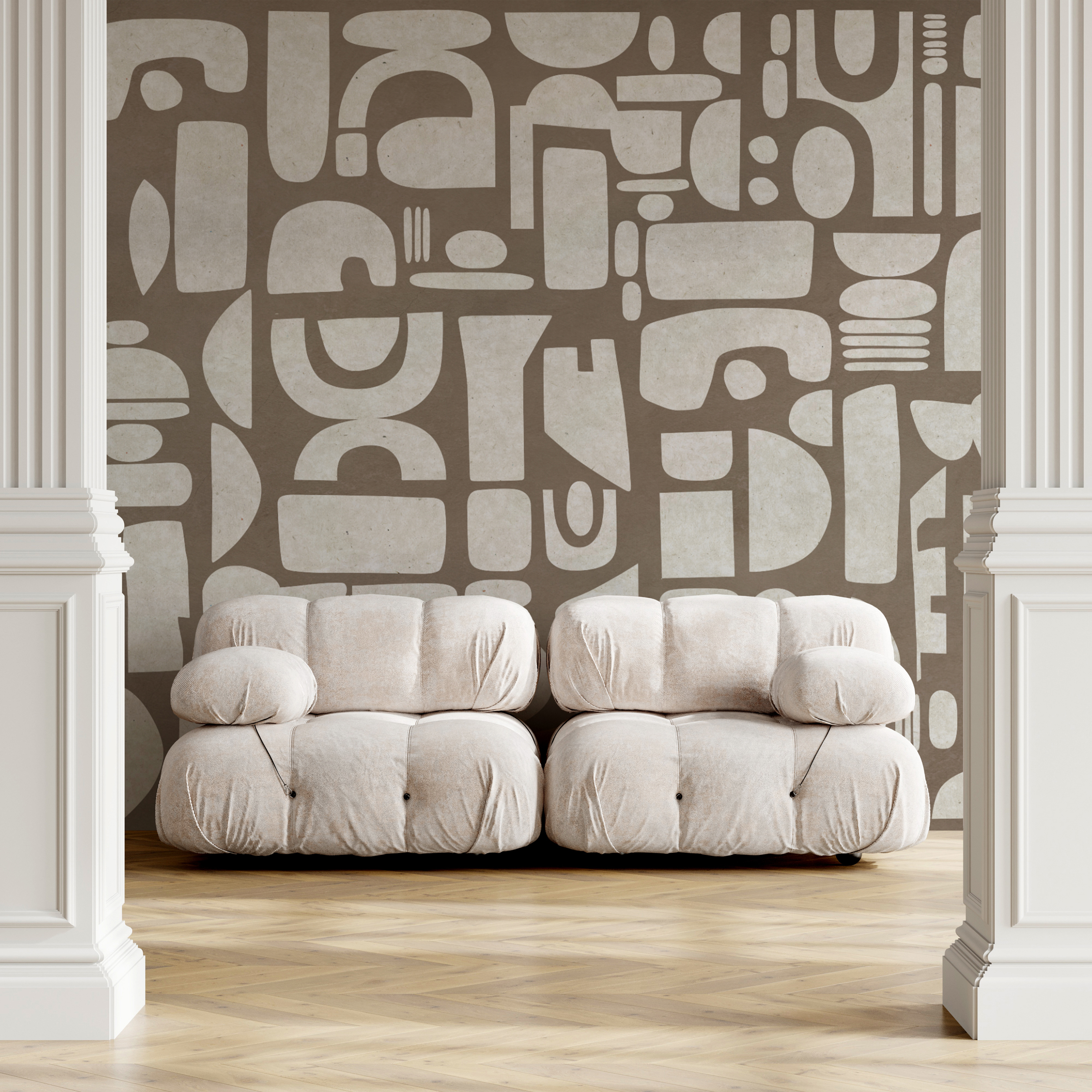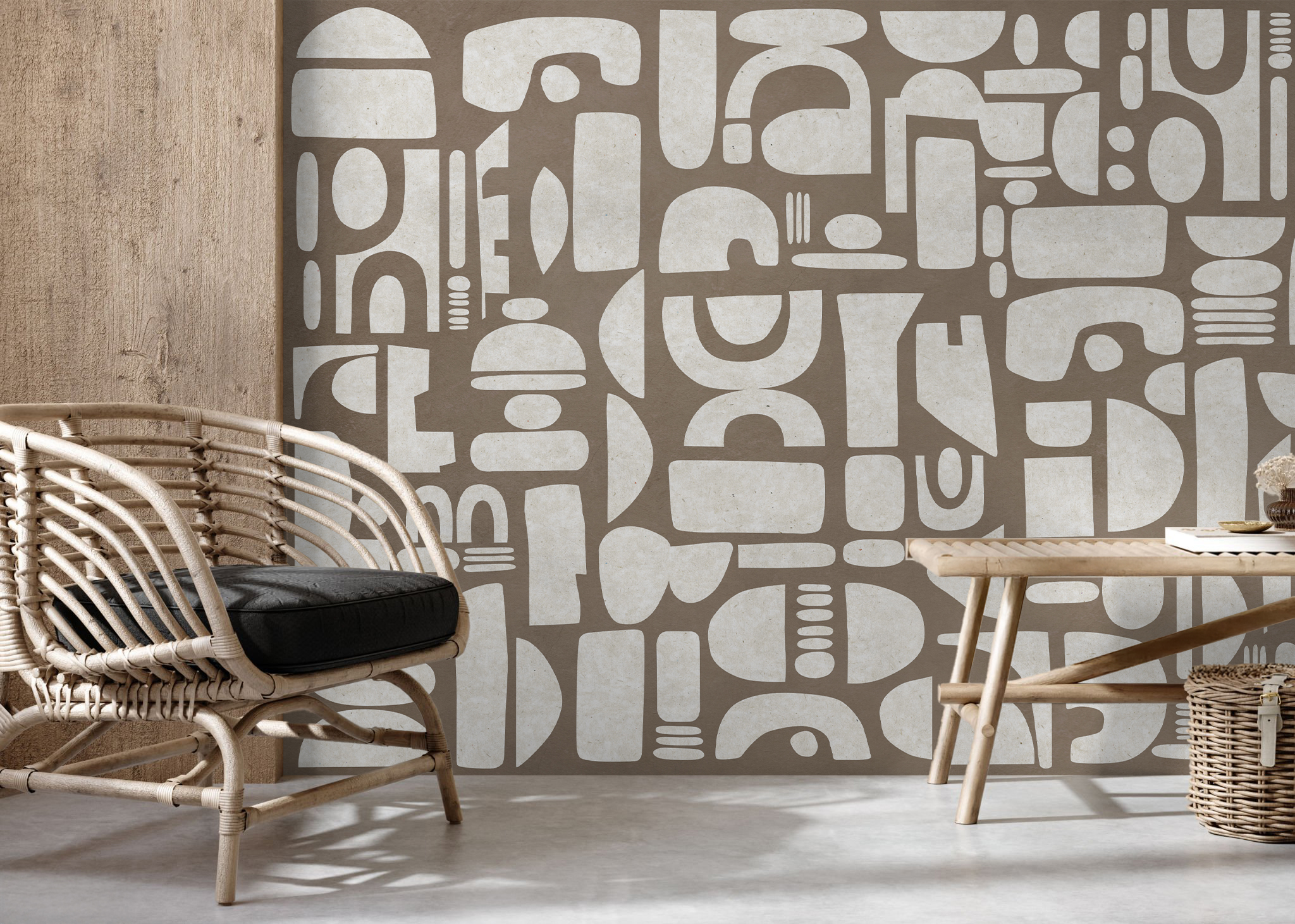 Abstrakcyjne kształty nawiązują do dawnych symboli i geometrycznych układów, a jednocześnie pozostają bardzo współczesne i uniwersalne. Dzięki temu AZTEC dobrze odnajduje się zarówno w aranżacjach minimalistycznych, jak i tych bardziej eklektycznych. To tapeta, która może działać jako spokojne tło albo mocniejszy akcent graficzny, zależnie od światła, dodatków i całego charakteru pomieszczenia.