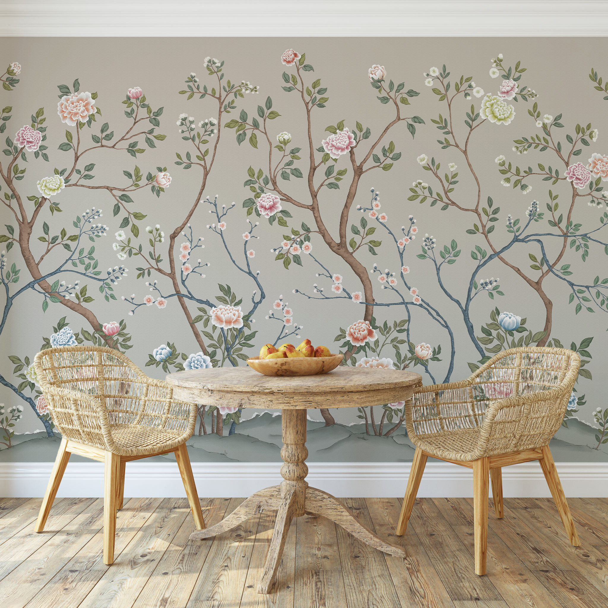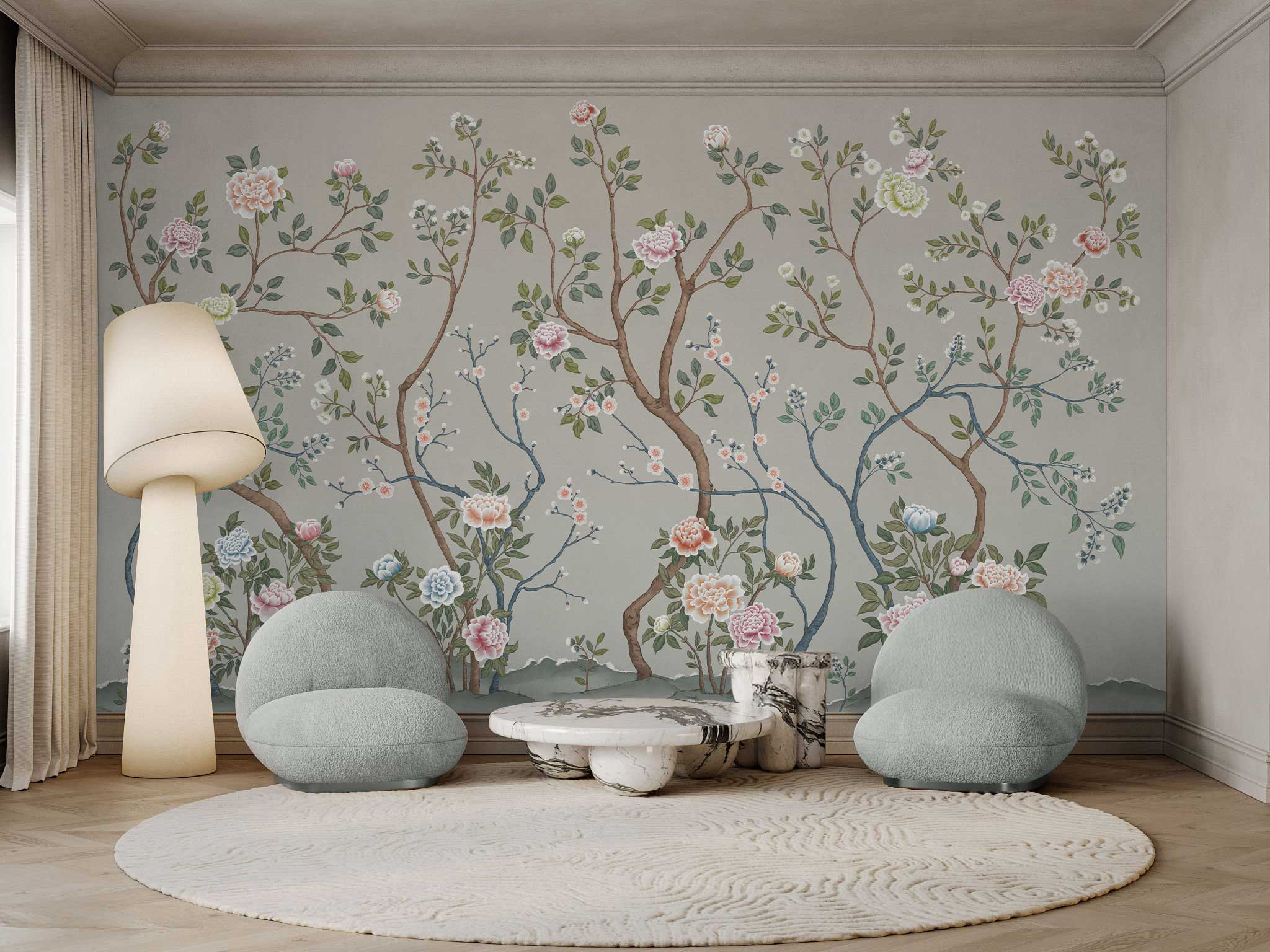 Tapeta Wall and More AZUMI 25135 22A została zainspirowana naturą i spokojem ogrodu. Delikatny rysunek gałązek oraz kwiatów nadaje ścianie lekkość, ale nie sprawia, że wzór znika we wnętrzu. Wręcz przeciwnie. To motyw, który porządkuje przestrzeń i wprowadza do niej spokojniejszy, bardziej miękki klimat.