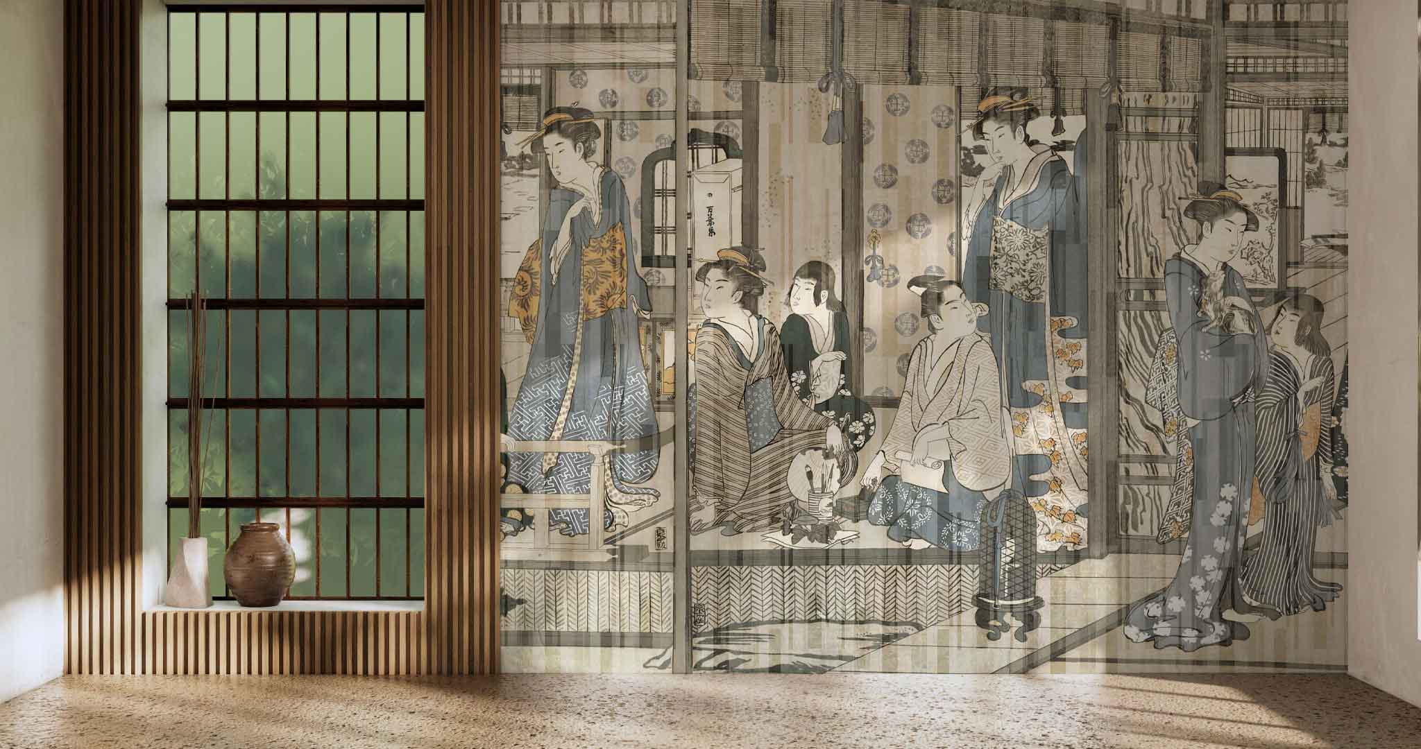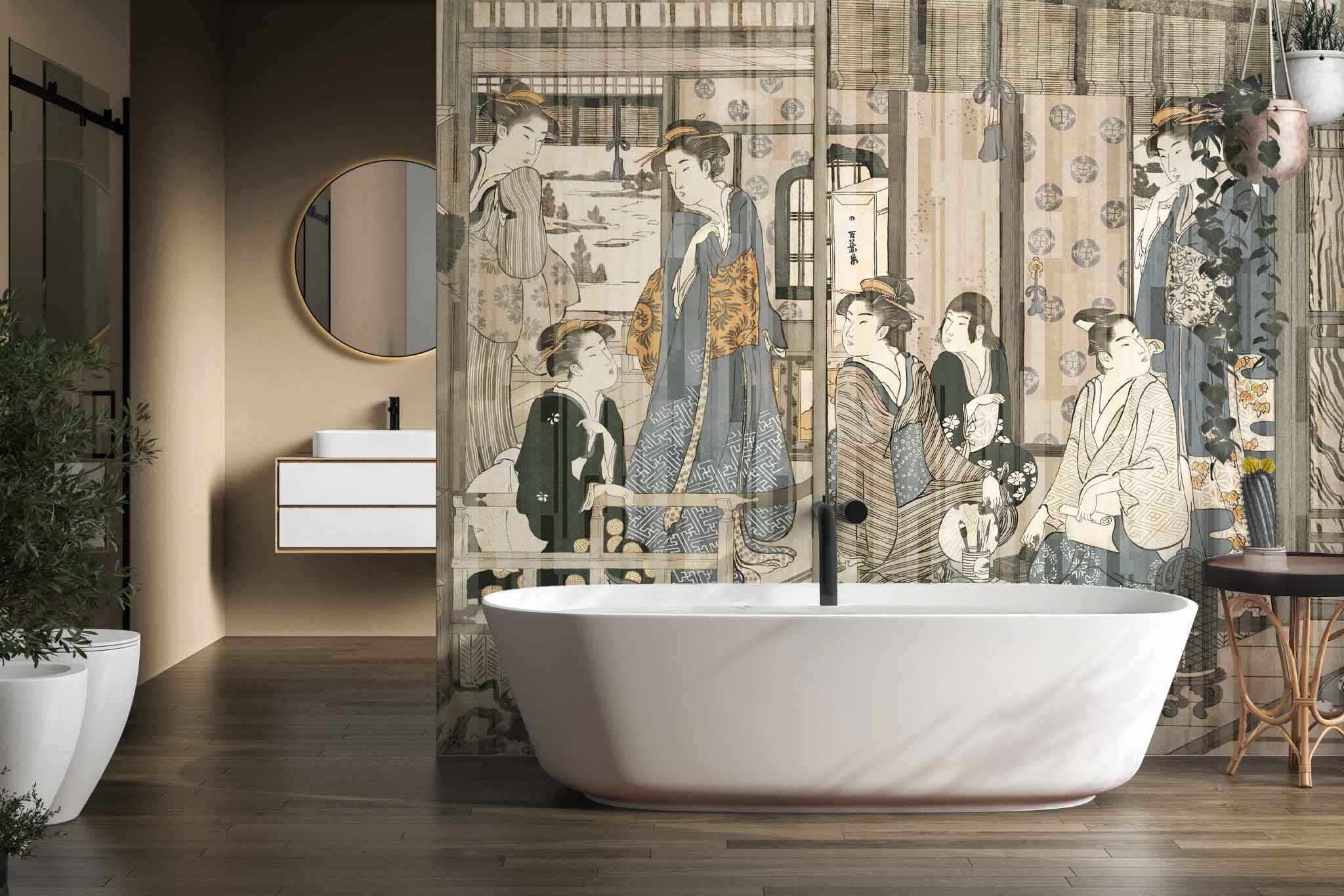 Delikatna kreska i misternie opracowane szczegóły przywołują skojarzenia z japońską codziennością, spokojnymi wieczorami, ceremonią herbacianą i estetyką rzeczy prostych, ale dopracowanych. KYOTO dobrze sprawdza się tam, gdzie wnętrze ma być wyciszone, harmonijne i pełne subtelnych odniesień do natury oraz kultury Dalekiego Wschodu. To dobry wybór do salonu, sypialni albo przestrzeni, w której liczy się atmosfera, a nie nadmiar bodźców.