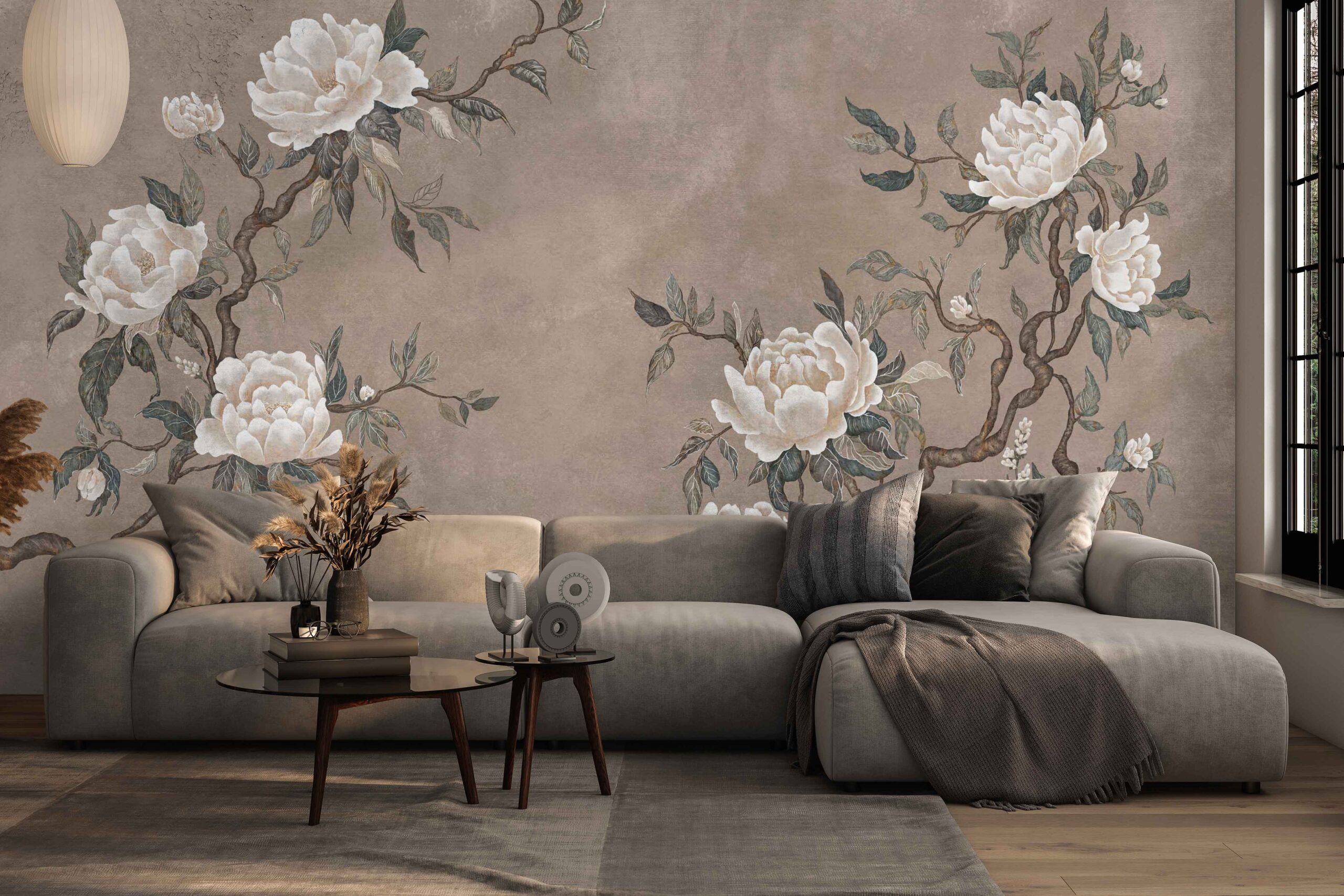 Tapeta Wall and More NOA – tapeta ścienna piwonie do jasnych i spokojnych wnętrz