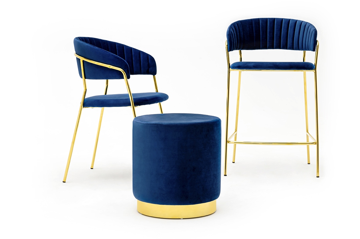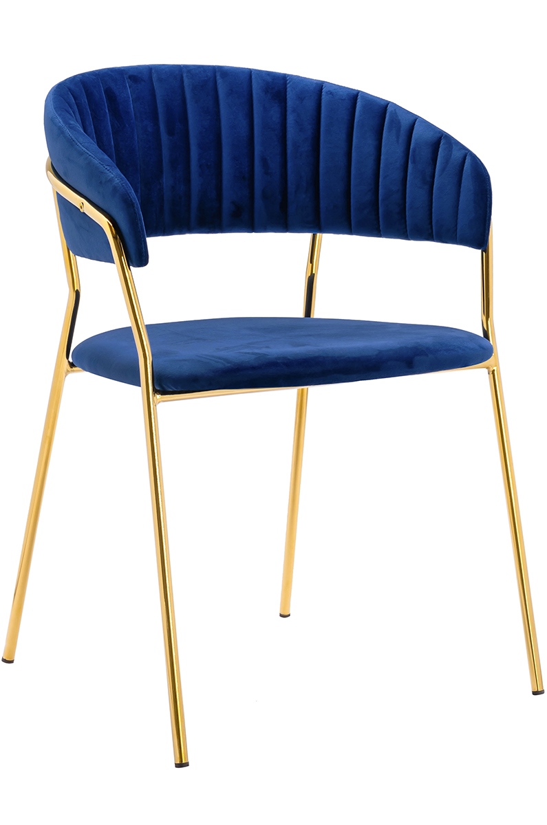 Krzesło MARGO ciemny niebieski - welur, podstawa złota.