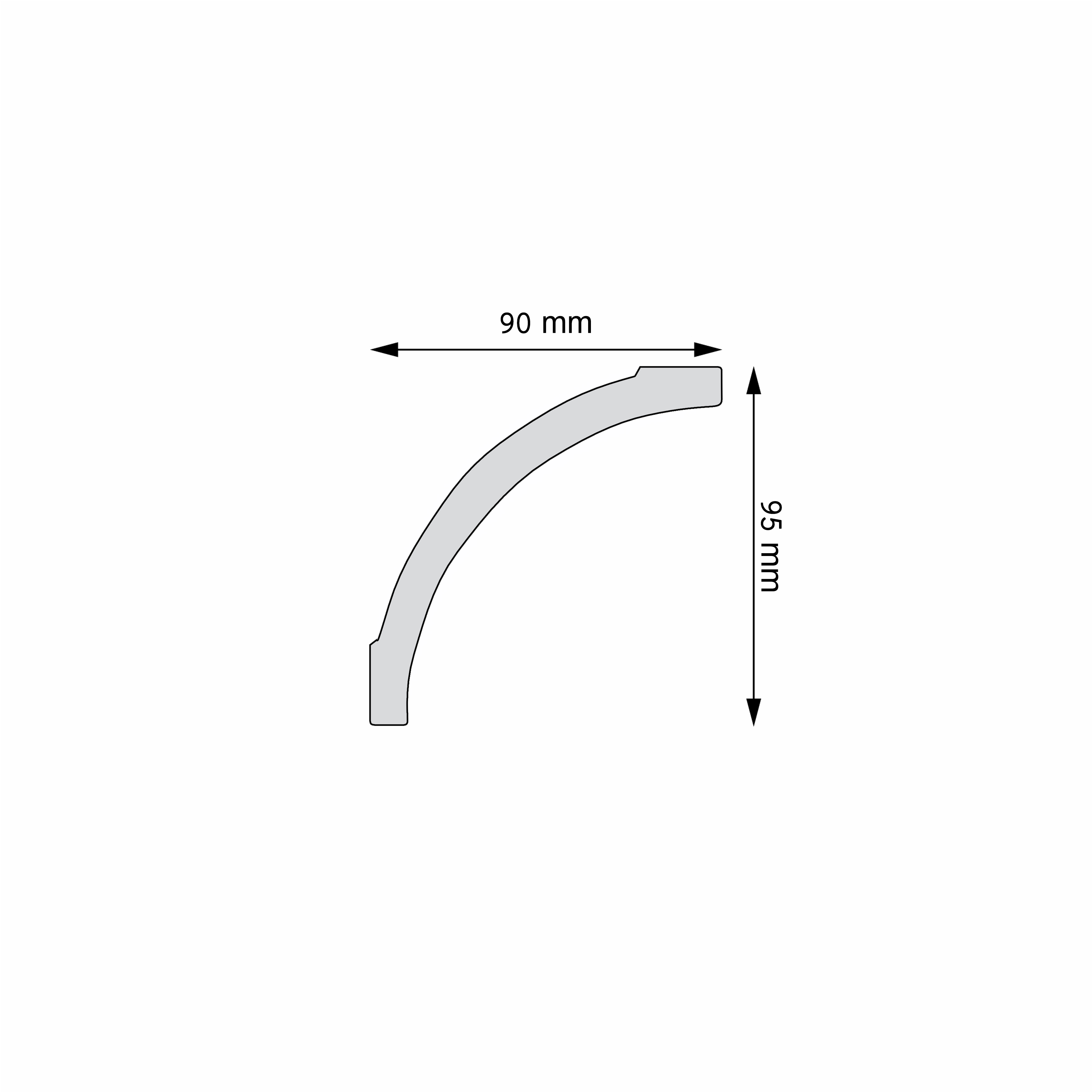 Profil ma ok. 9–9,5 cm wysokości i szerokości, co daje wyraźny, ale nadal uniwersalny efekt – listwa nie dominuje wnętrza, tylko porządkuje linię przy suficie. Dodatkowo może maskować nierówności oraz drobne przewody przy styku ściany i sufitu.
