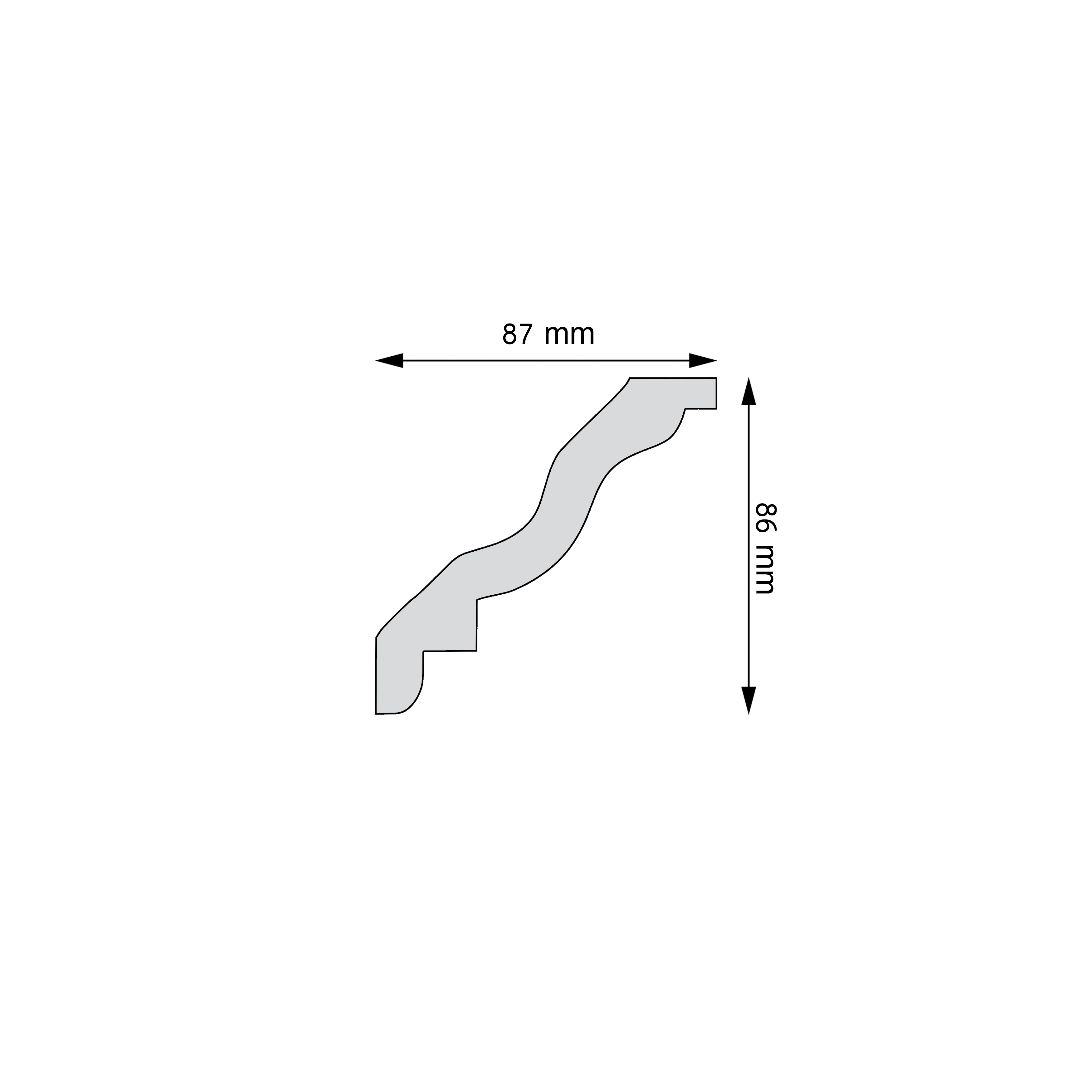 Profil o wymiarach 8,7 x 8,6 cm daje wyraźne, ale neutralne wykończenie sufitu. Pozwala również zamaskować drobne nierówności oraz przewody prowadzone przy suficie.