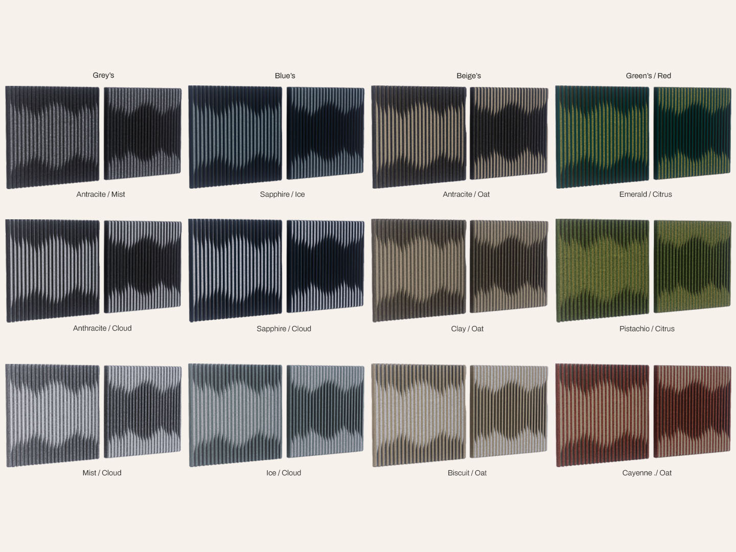 Produkt sprzedawany jako pojedynczy panel w formacie Large. Możliwość łączenia wielu paneli pozwala tworzyć rozbudowane systemy akustyczne oraz efektowne, nowoczesne ściany.