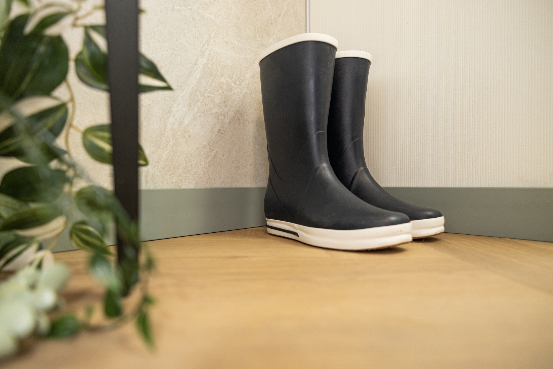 Panel mineralny wykonany został w technologii HD Mineral Core, która zapewnia wysoką stabilność wymiarową oraz trwałość materiału. System montażowy Modee LOCK umożliwia szybkie i precyzyjne łączenie płyt bez konieczności stosowania fug, co pozwala stworzyć elegancką i nowoczesną okładzinę ścienną.