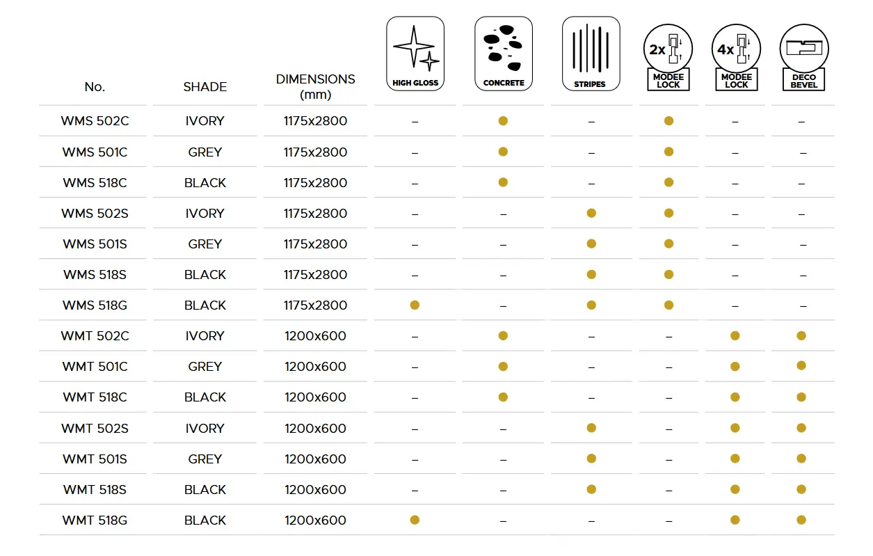 Technologia HD Mineral Core odpowiada za wysoką stabilność wymiarową oraz odporność na ścieranie, zarysowania i plamy. Klasa reakcji na ogień B-s2,d0 umożliwia zastosowanie w wymagających przestrzeniach użytkowych.