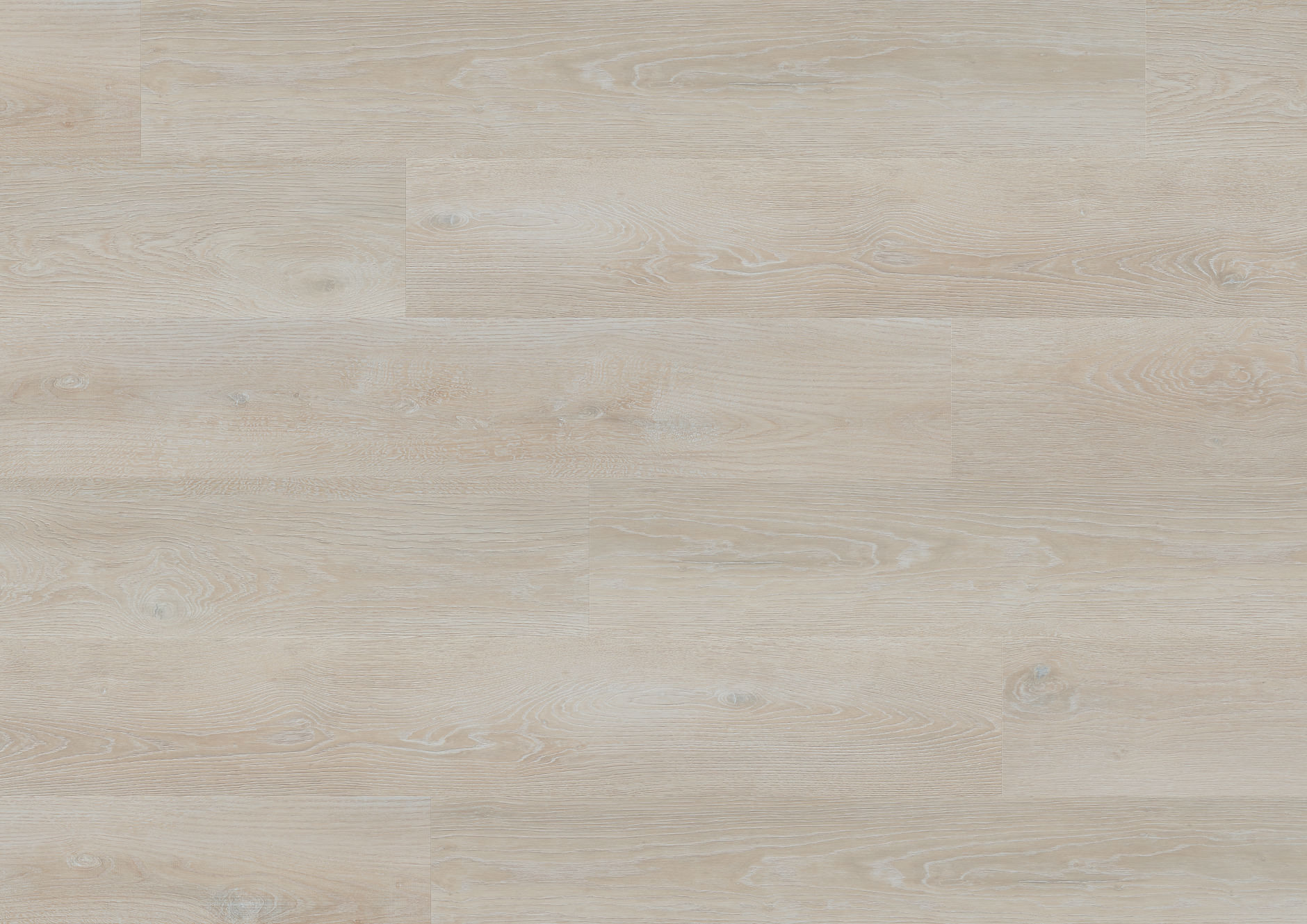 Dąb Stockholm marki ter Hürne to podłoga winylowa w formacie długiej deski, z dekorem drewna w bardzo jasnym, lekko rozbielonym odcieniu. Na aranżacjach widać spokojny układ słojów, subtelne sęki i delikatne przejścia tonalne, dzięki czemu podłoga dobrze sprawdza się w nowoczesnych salonach, jadalniach i większych przestrzeniach dziennych. Taki dekor optycznie rozjaśnia wnętrze i stanowi spokojną bazę dla wyposażenia. Dłuższy i szerszy format deski pomaga uporządkować większą powierzchnię i daje bardziej spójny układ całej podłogi. Głęboko szczotkowana powierzchnia lepiej pokazuje charakter drewna, a matowe wykończenie ogranicza odbicia światła. 4-stronna mikrofaza podkreśla krawędzie każdej deski i wzmacnia efekt pojedynczych elementów. To model do zastosowań domowych i komercyjnych, z parametrami dopasowanymi do codziennego użytkowania.