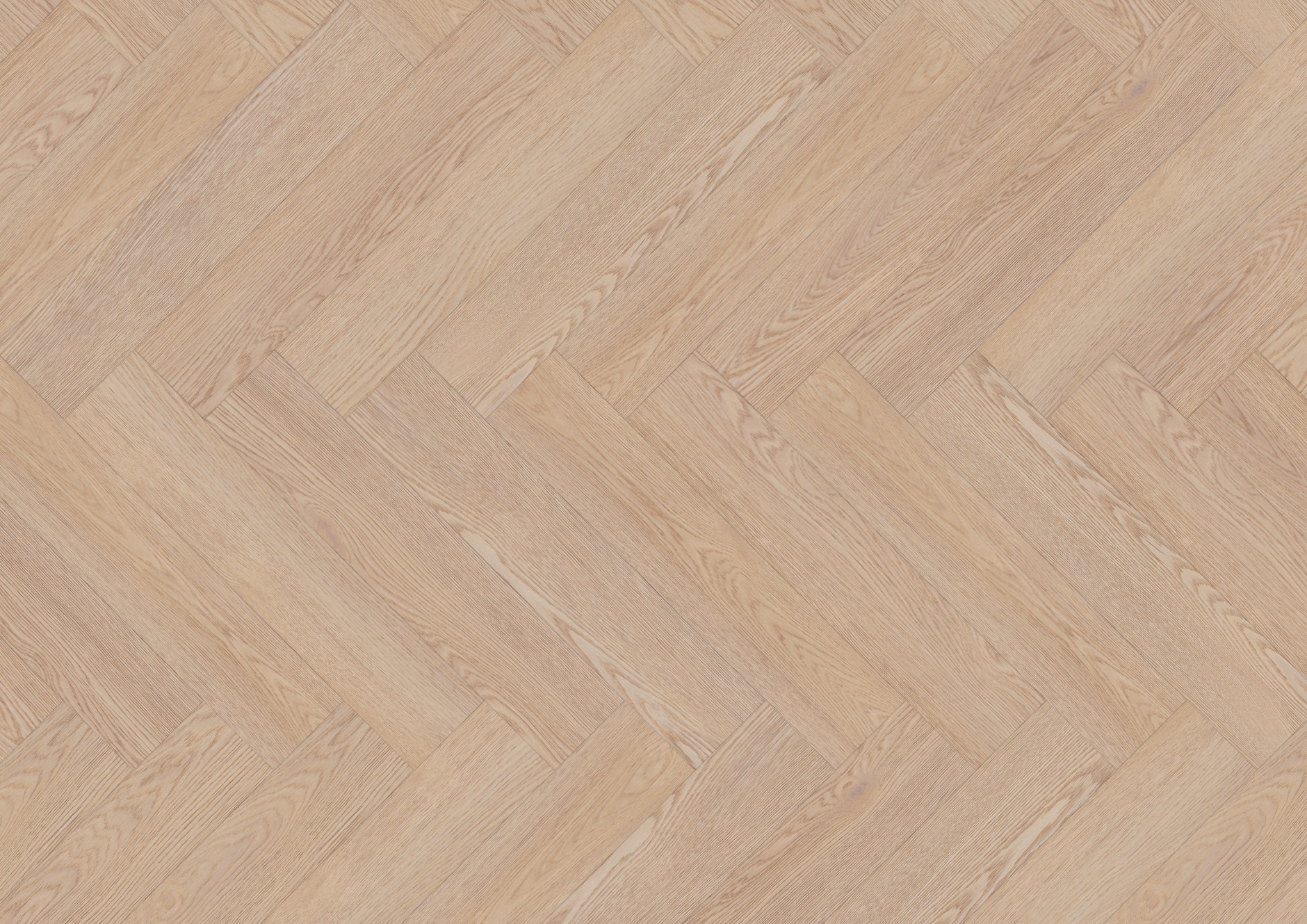 Jasny dekor dębowy w układzie jodełki z wyraźnym, naturalnym usłojeniem. Powierzchnia jest głęboko szczotkowana, co podkreśla strukturę drewna i daje bardziej wyczuwalny efekt pod stopą. Extra matowe wykończenie ogranicza odbicia światła i nadaje całości spokojny, naturalny wygląd.