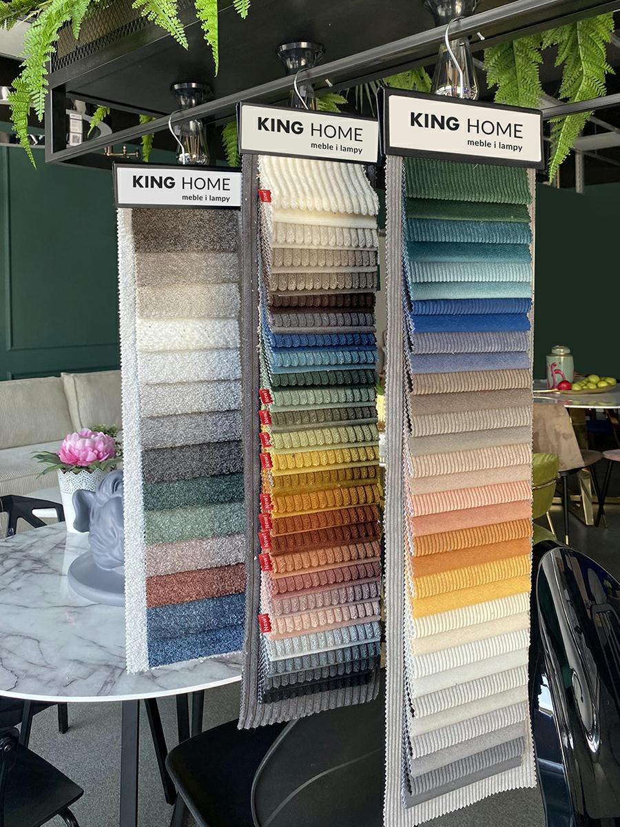Całość wykończono w przyjemnej w dotyku tkaninie sztruksowej w jasnym beżowym odcieniu o nazwie Poso 38.