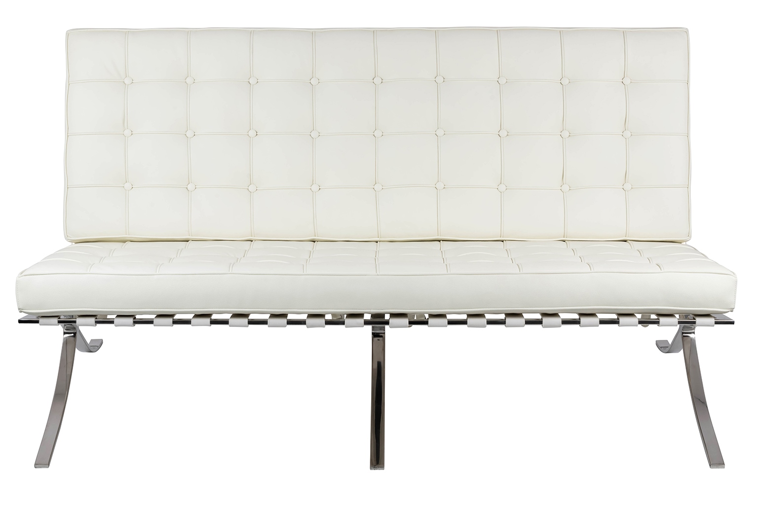 Sofa dwuosobowa BARCELON PRESTIGE PLUS biała - włoska skóra naturalna, stal