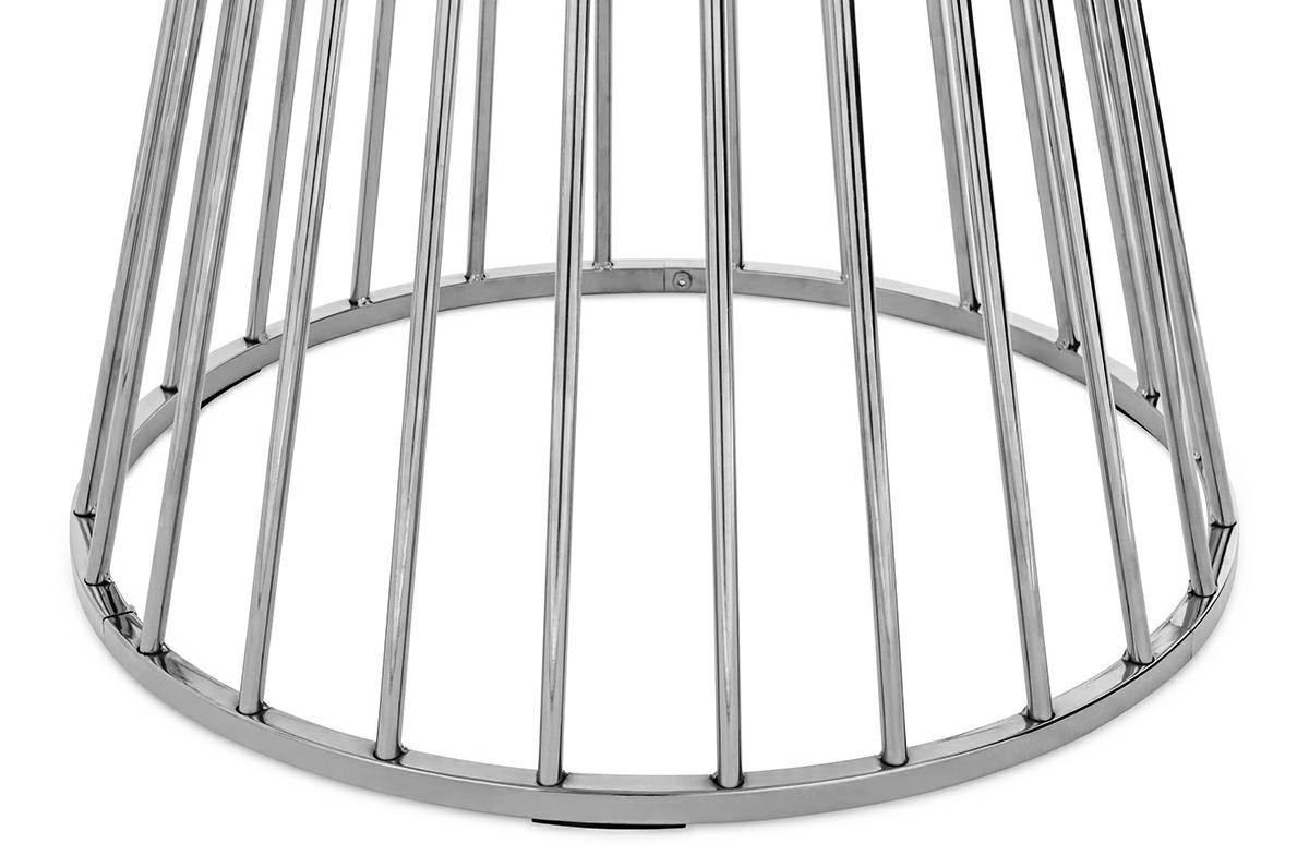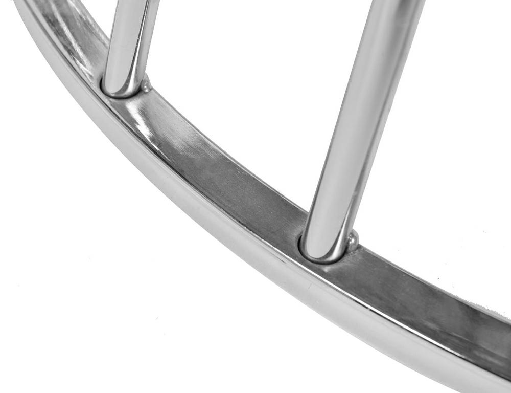 Stabilna podstawa z metalowych poprzeczek w kolorze chrom nadaje konstrukcji lekkości, a jednocześnie podkreśla jej luksusowy charakter.