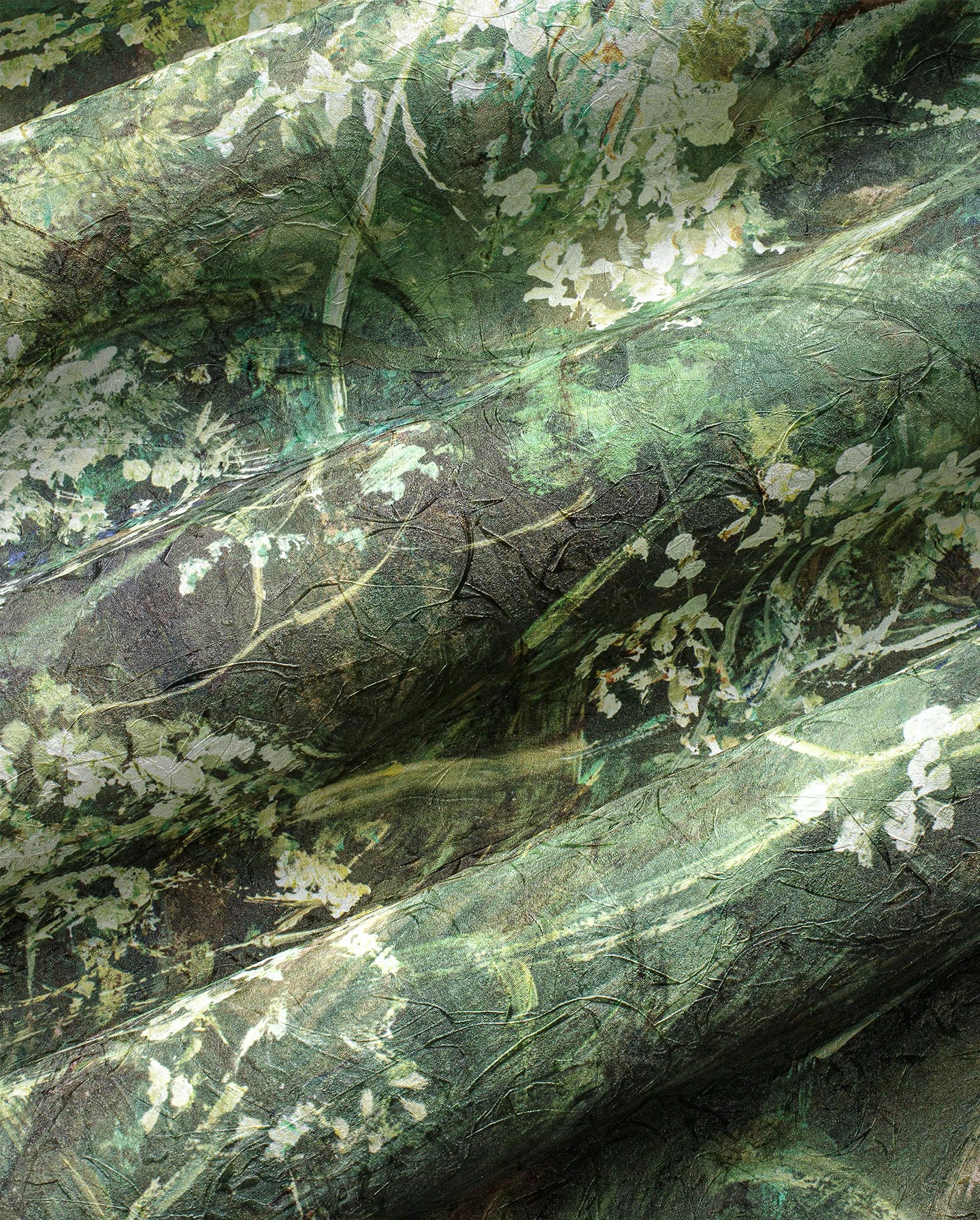 Próbka ułatwia ocenę, jak zielone tony wypadają w Twoim świetle i czy kontrast między jaśniejszym tłem a ciemniejszym rdzeniem jest zgodny z oczekiwaniem. Przy wyborze podłoża można zachować ten sam charakter motywu, zmieniając jedynie odbiór powierzchni i jej pracę ze światłem. Jeśli zależy Ci na konkretnym fragmencie układu, najlepiej zamówić próbkę z wybranego kadru.