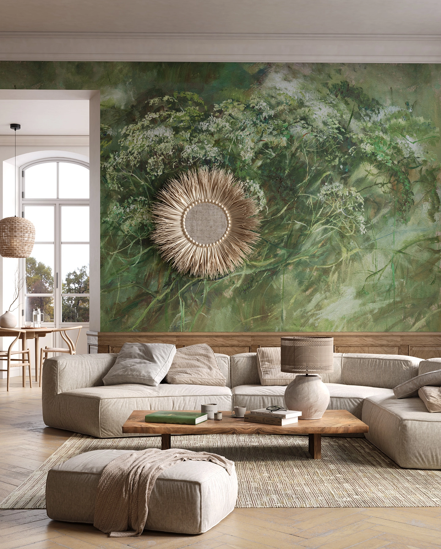 Najbardziej skoncentrowany fragment motywu wypada w centralnej części, dlatego warto świadomie ustawić go względem strefy najbardziej widocznej na ścianie.