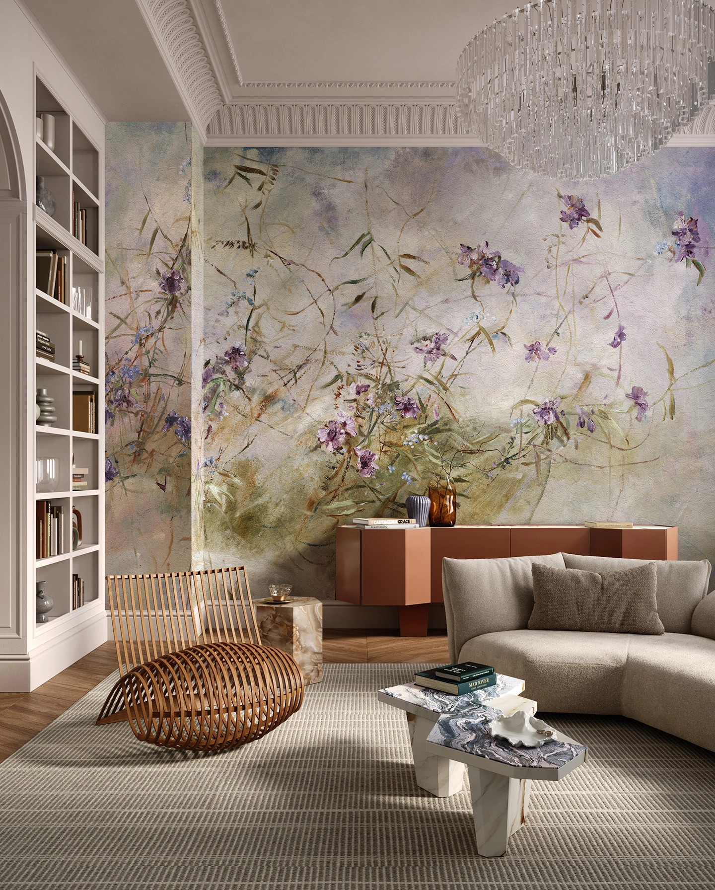 Próbka ułatwia ocenę, jak te subtelne, pastelowe tony zachowują się w Twoim oświetleniu i czy zielonkawy pas jest wystarczająco widoczny z dystansu. Przy wyborze podłoża warto zwrócić uwagę na odbiór światła na powierzchni — tutaj to właśnie delikatność przejść buduje całość. Jeśli zależy Ci na konkretnym fragmencie z bardziej wyraźnym pasem w centrum albo spokojniejszym tłem, najlepiej zamówić próbkę z wybranego kadru.