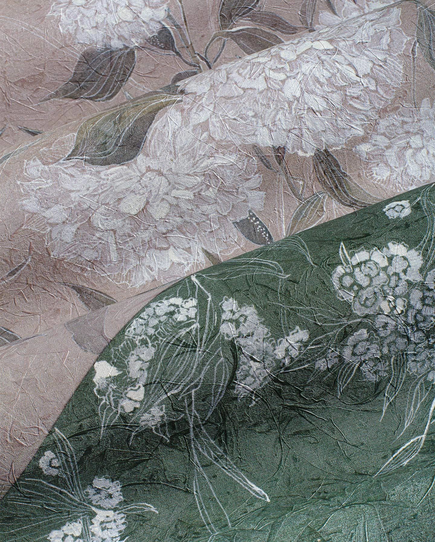 Próbka pomaga ocenić, jak jasne kwiaty wypadają na ciepłym tle oraz jak mocno czytelna jest różnica między beżem a ciemną zielenią w Twoim świetle. W zależności od podłoża inaczej mogą być widoczne subtelne przejścia w płatkach i łodygach. Jeśli zależy Ci na fragmencie z większą liczbą kwiatów albo z bardziej wyeksponowaną zielenią u dołu, warto zamówić próbkę z wybranego kadru.