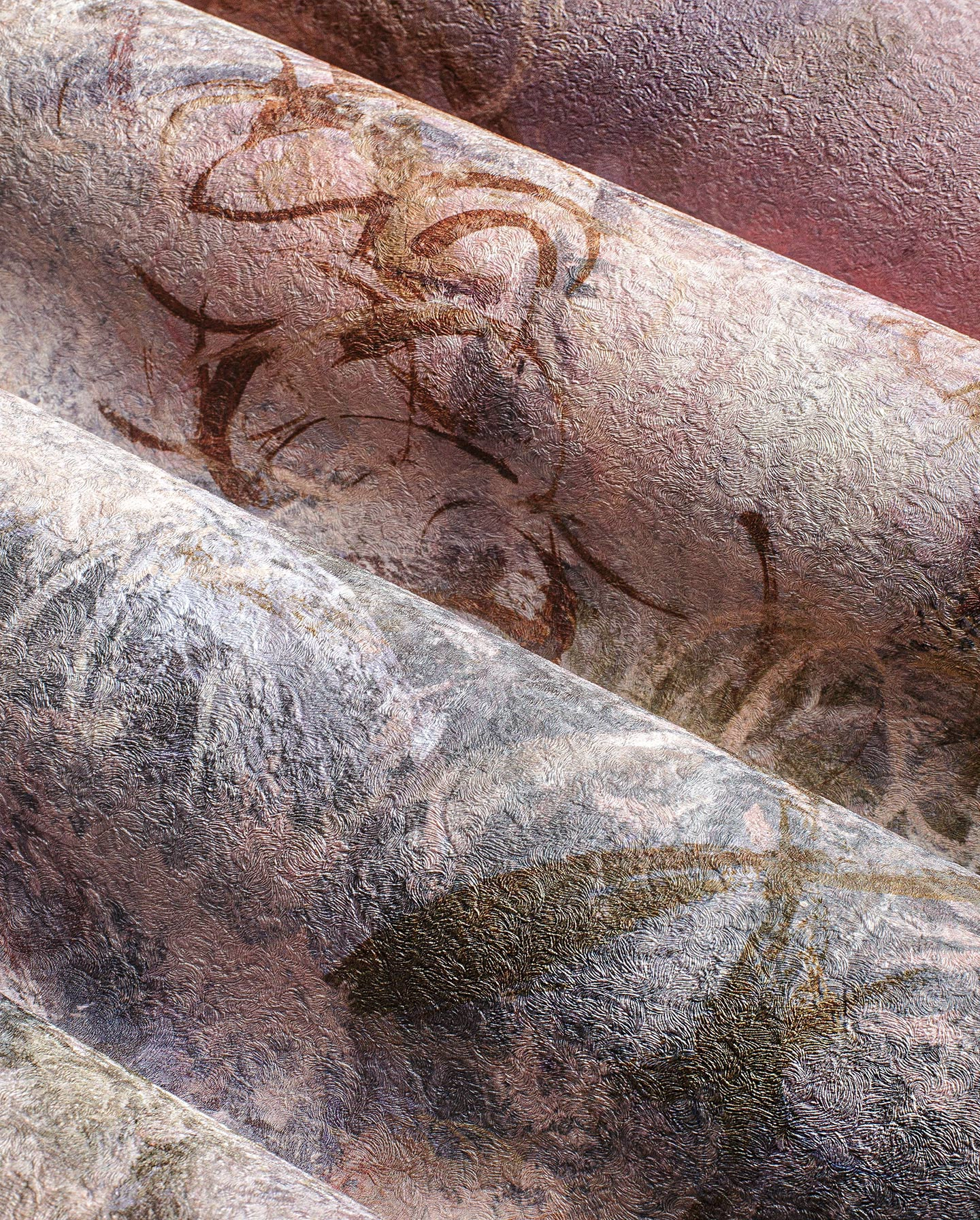 Wzór czyta się jako „chmura” koloru osadzona w środku kadru, z jaśniejszymi prześwitami dookoła. Z dystansu zostaje głównie pastelowa masa kwiatów i ciemniejsza podstawa, a z bliska widać pojedyncze, drobne płatki oraz lekkie przetarcia tła.