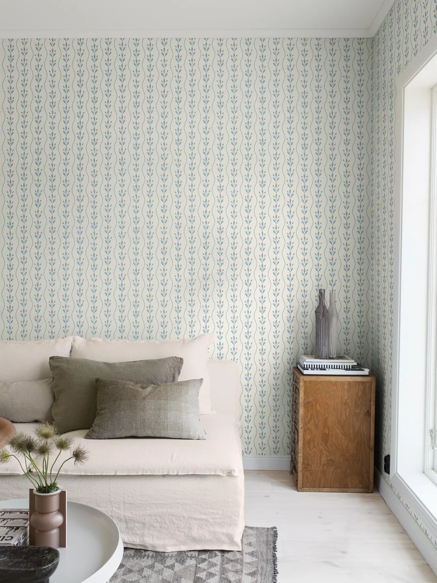 Subtelny roślinny wzór dobrze sprawdza się w sypialni, pokoju dziecięcym lub innych jasnych wnętrzach. Delikatny motyw pąków kwiatów pasuje do aranżacji skandynawskich, klasycznych oraz romantycznych.
