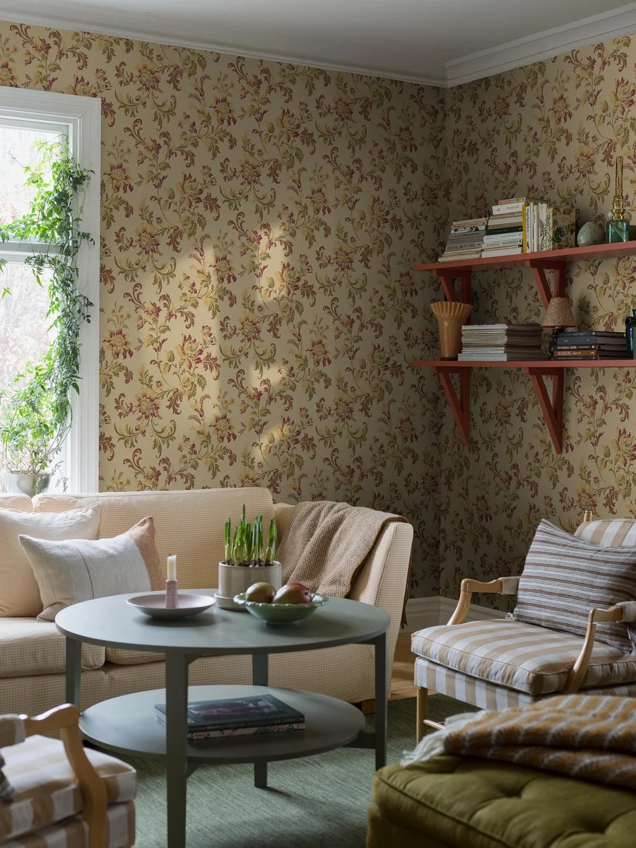 Ta tapeta w kwiaty dobrze sprawdzi się w salonie, sypialni oraz jadalni, gdzie zależy Ci na dekoracyjnej ścianie, ale w spokojniejszym tonie. Beżowa baza dobrze współgra z drewnem, jasnymi podłogami, naturalnymi tkaninami i klasycznymi meblami. Może być stosowana na całej powierzchni pomieszczenia bez efektu przytłoczenia.