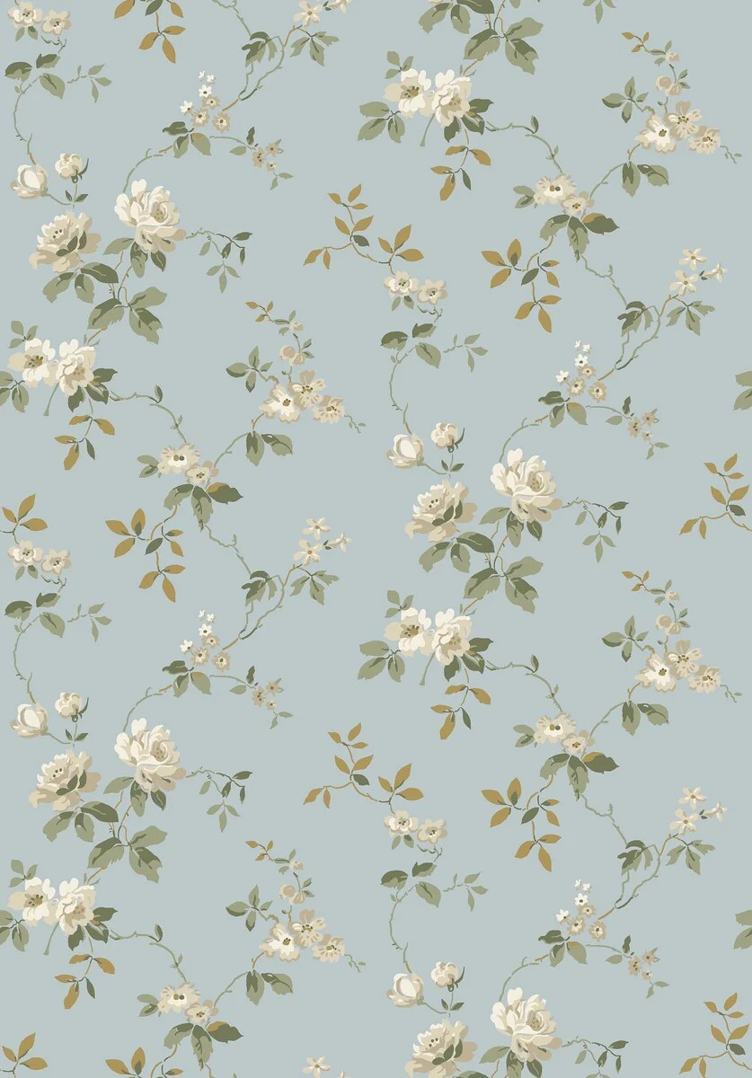 Model Värmdö 8087 z kolekcji Anno II to niewielki, regularny motyw dekoracyjny osadzony na niebieskim tle. Wzór ma rytmiczny, uporządkowany układ, dzięki czemu ściana zyskuje wyraźny, ale spokojny efekt. Niebieska baza wprowadza świeżość i dobrze sprawdza się w jasnych aranżacjach.